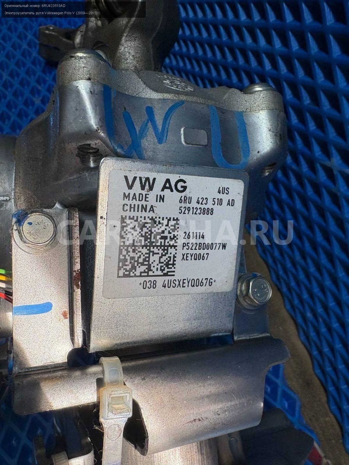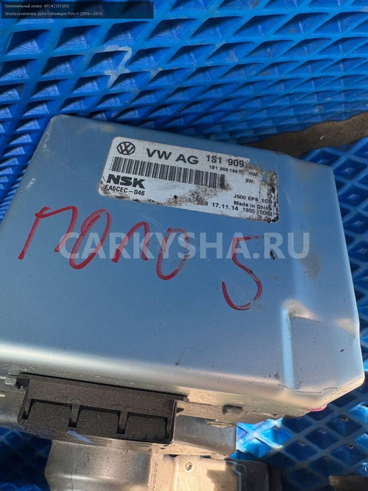 Volkswagen Polo V, ЭУР.\nАртикул: 8481\n\nОриг. номер: 6RU423510AD\nПроизводитель: VAG\nПримечание:Фольксваген Поло 5, ЭУР, электроусилитель руля , б/у. \n\nМарка: Volkswagen\nМодель: Polo V (2009—2015)\nГод выпуска: 2015\nКузов тип: Седан\nДвигатель номер: CFNB\nОбъем: 1.6\nТопливо: Бензин\nКоробка: Механика\nЦвет: Серебристо-желтый\nСовместимости: Volkswagen Polo V (2009—2015) 1.6 MPI MT (85 л.с.)\nСовместимость:
