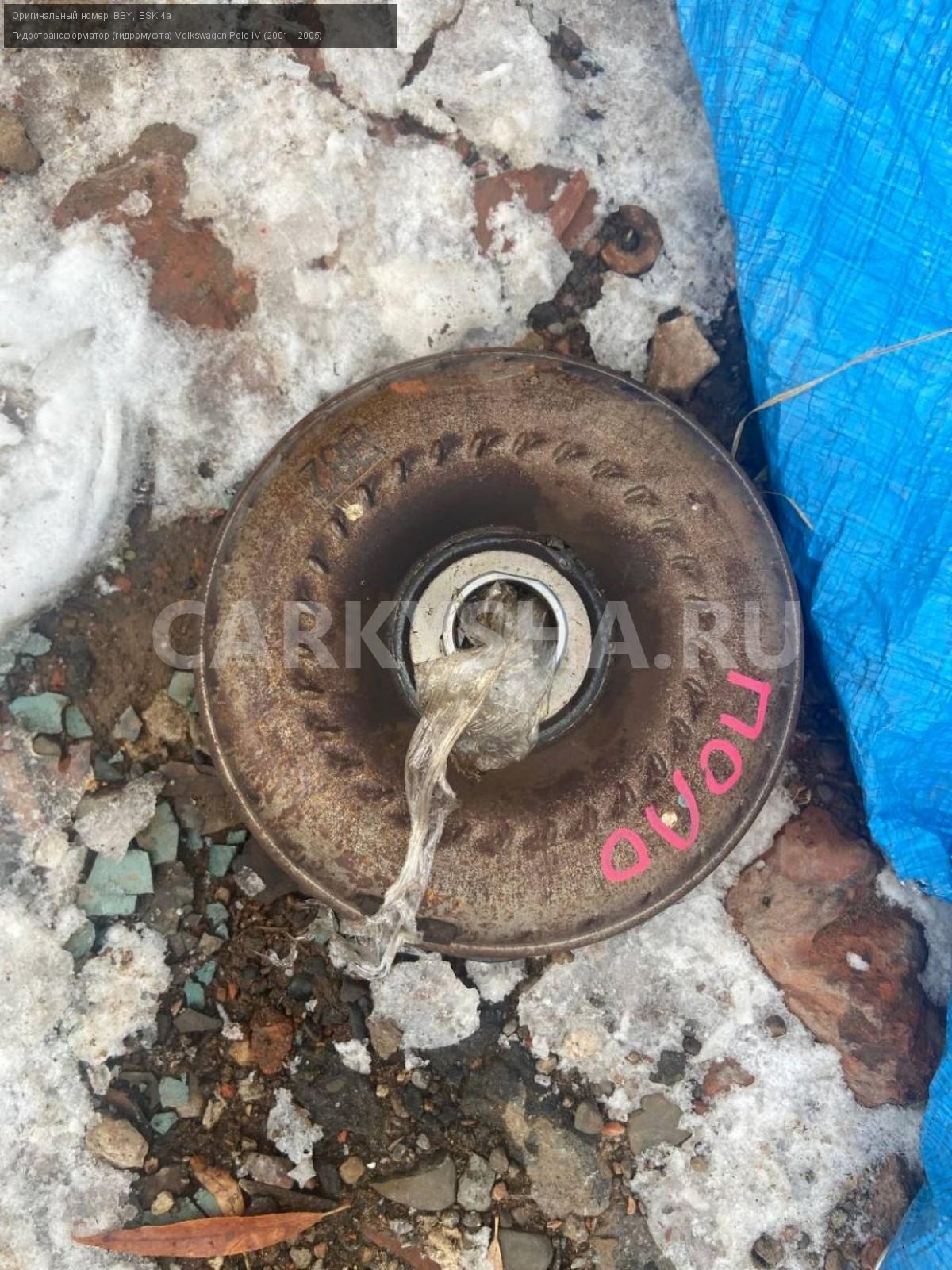 Volkswagen Polo IV , 1,4 гидротрансформатор.\nАртикул: 3674\n\nОриг. номер: BBY\nНомера замен: ESK 4a\nПроизводитель: VOLKSWAGEN\nПримечание:Фольцваген Поло 4, 1,4 акпп, гидротрансформатор esk 4a, б/у. \n\nМарка: Volkswagen\nМодель: Polo IV (2001—2005)\nГод выпуска: 2002\nКузов тип: Хетчбэк\nДвигатель номер: BBY\nМодель двигателя: инжектор\nОбъем: 1.4\nТопливо: Бензин\nКоробка: Автомат\nЦвет: Синий\nСовместимости: Volkswagen Polo IV (2001—2005) 1.4 AT (75 л.с.)\nСовместимость: