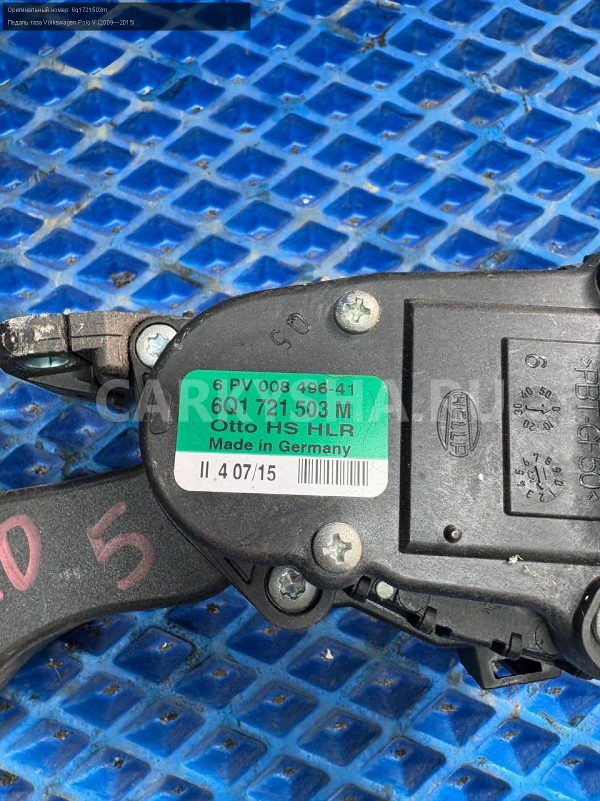 Volkswagen Polo V, педаль газа электронная.\nАртикул: 8689\n\nОриг. номер: 6q1721503m\nПроизводитель: VAG\nПримечание:Фольксваген Поло 5, педаль газа электронная, б/у. \n\nМарка: Volkswagen\nМодель: Polo V (2009—2015)\nГод выпуска: 2015\nКузов тип: Седан\nДвигатель номер: CFNB\nОбъем: 1.6\nТопливо: Бензин\nКоробка: Механика\nЦвет: Серебристо-желтый\nСовместимости: Volkswagen Polo V (2009—2015) 1.6 MPI MT (85 л.с.)\nСовместимость: