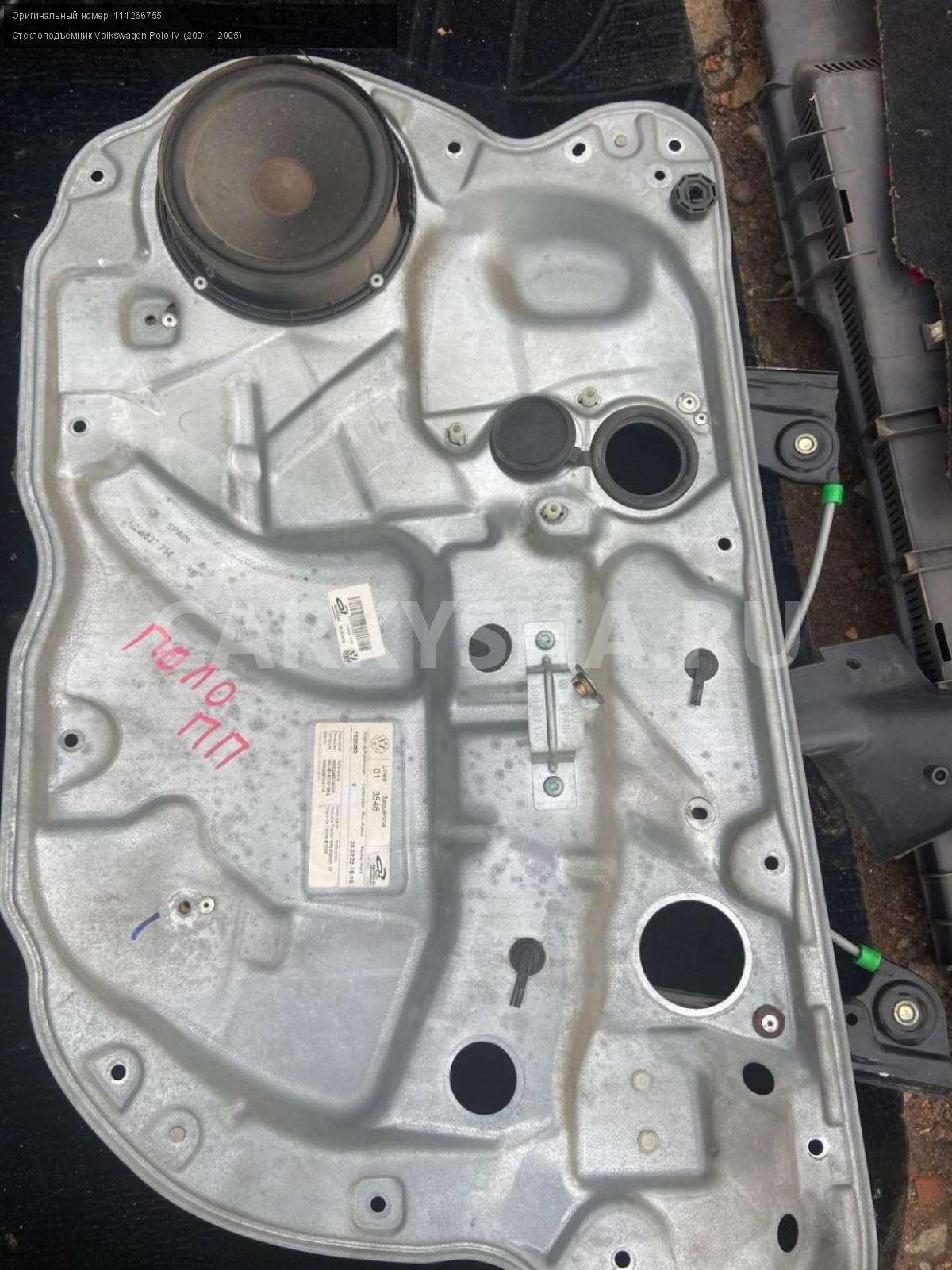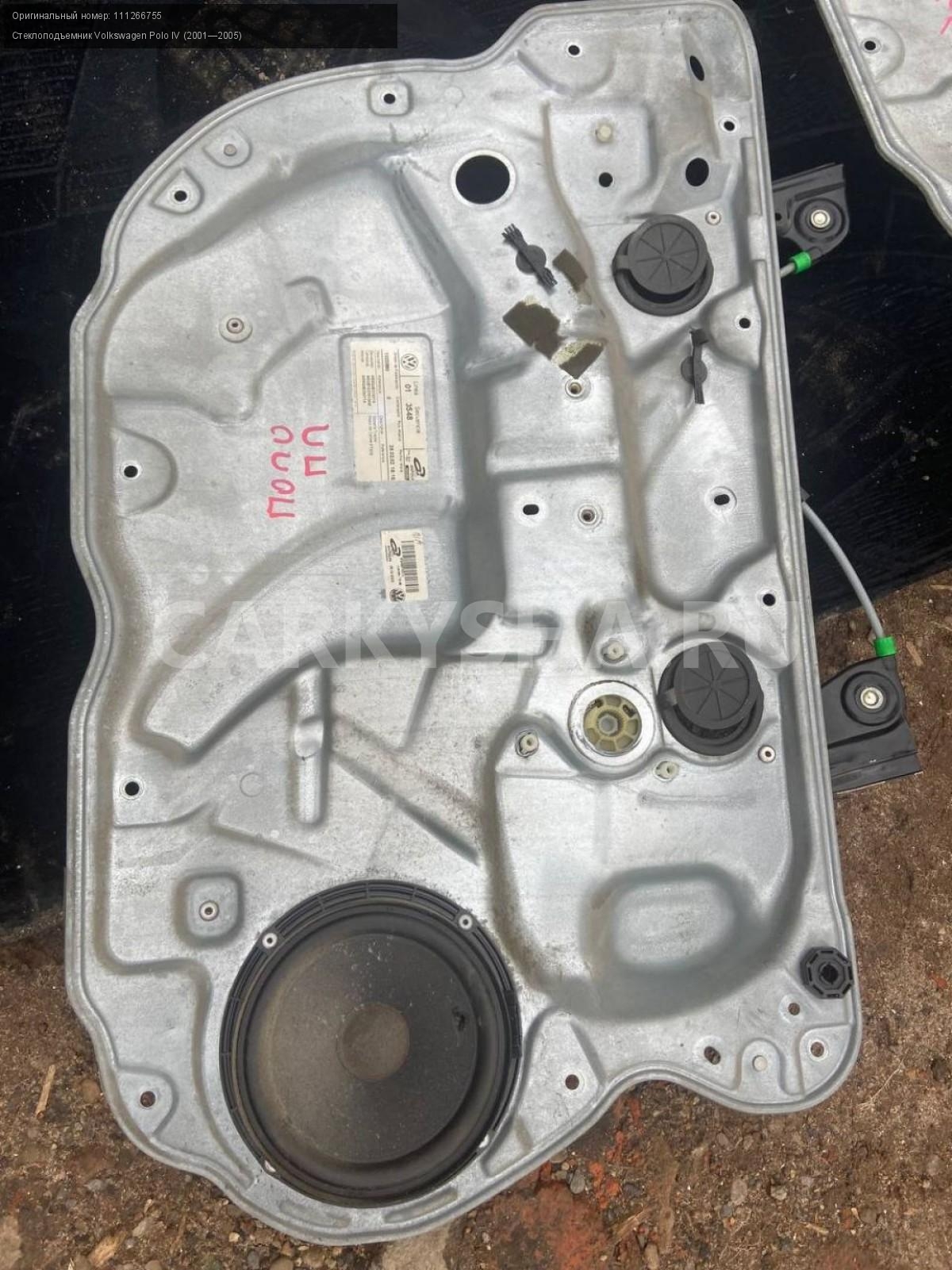 Volkswagen Polo IV, механизм стеклоподъемника.\nАртикул: 3637\n\nОриг. номер: 111266755\nПроизводитель: VOLKSWAGEN\nПримечание:Фольцваген Поло 4, механизм стеклоподъемника, без мотора, цена за штуку, б/у. \n\nМарка: Volkswagen\nМодель: Polo IV (2001—2005)\nГод выпуска: 2002\nКузов тип: Хетчбэк\nДвигатель номер: BBY\nМодель двигателя: инжектор\nОбъем: 1.4\nТопливо: Бензин\nКоробка: Автомат\nЦвет: Синий\nСовместимости: Volkswagen Polo IV (2001—2005) 1.4 AT (75 л.с.)\nСовместимость:
