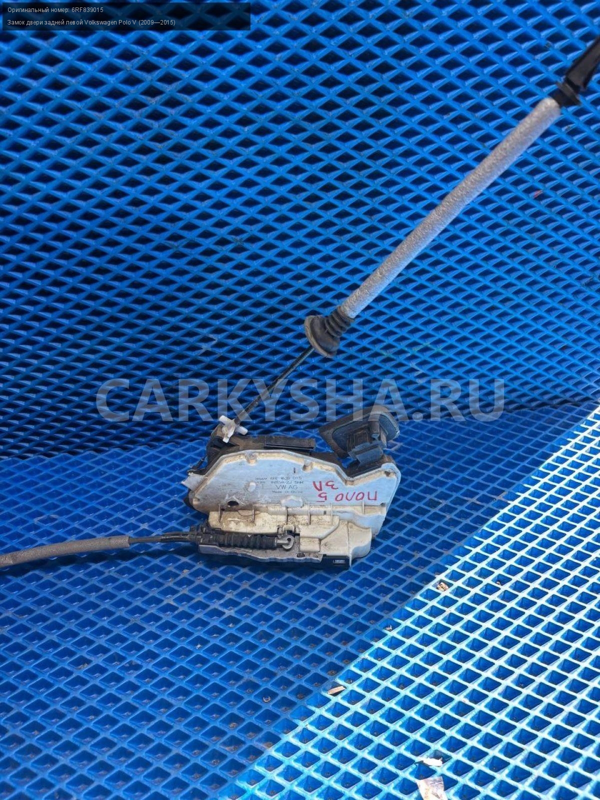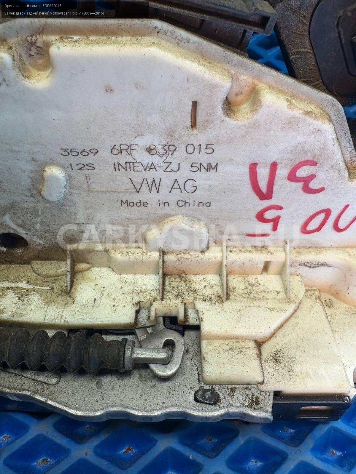 Volkswagen Polo V, замок двери задней левой.\nАртикул: 8464\n\nОриг. номер: 6RF839015\nПроизводитель: VAG\nПримечание:Фольксваген Поло 5, замок двери задней левой, б/у. \n\nМарка: Volkswagen\nМодель: Polo V (2009—2015)\nГод выпуска: 2015\nКузов тип: Седан\nДвигатель номер: CFNB\nОбъем: 1.6\nТопливо: Бензин\nКоробка: Механика\nЦвет: Серебристо-желтый\nПраво/Лево: Лево\nПеред/Зад: Зад\nСовместимости: Volkswagen Polo V (2009—2015) 1.6 MPI MT (85 л.с.)\nСовместимость: