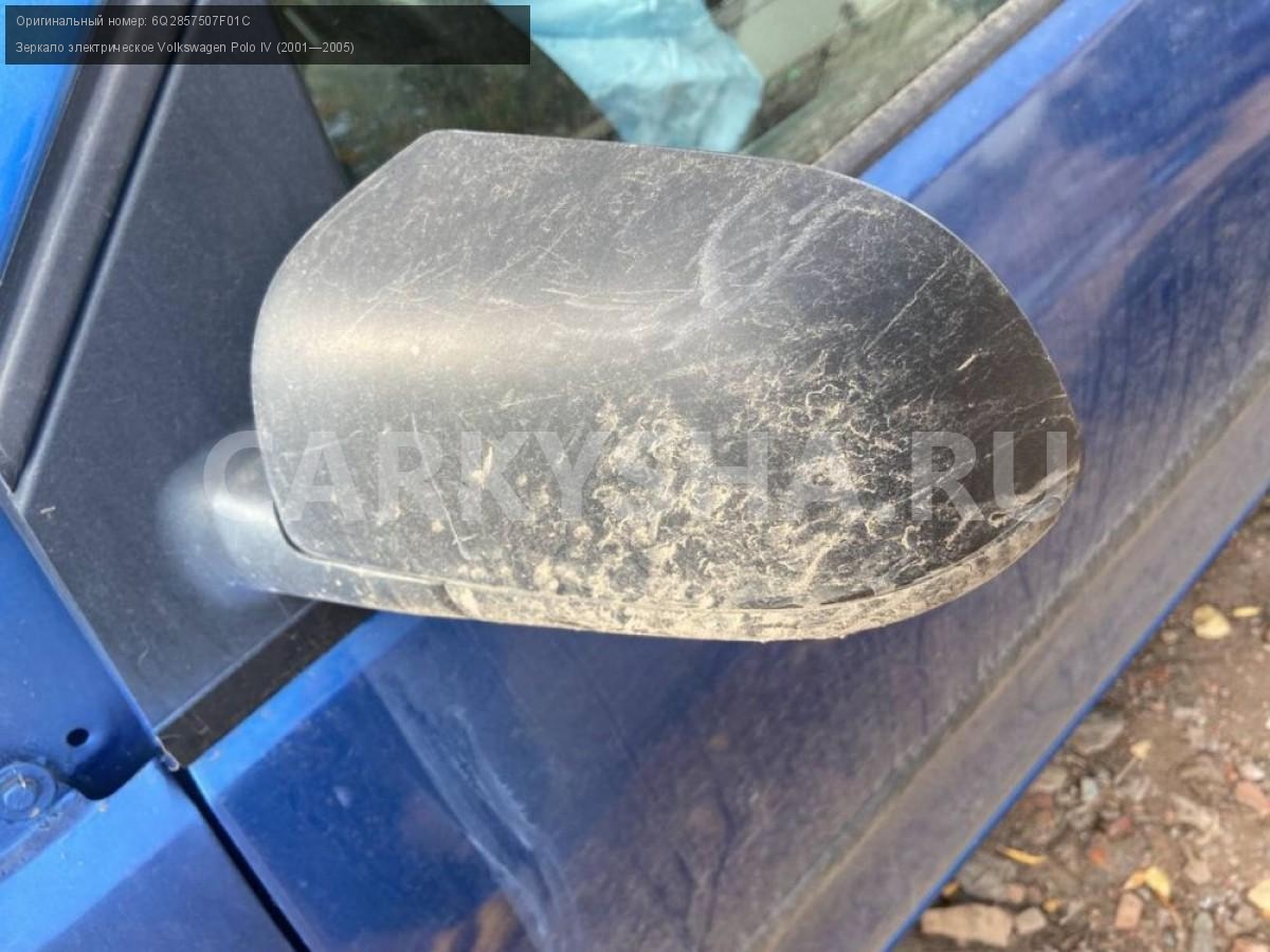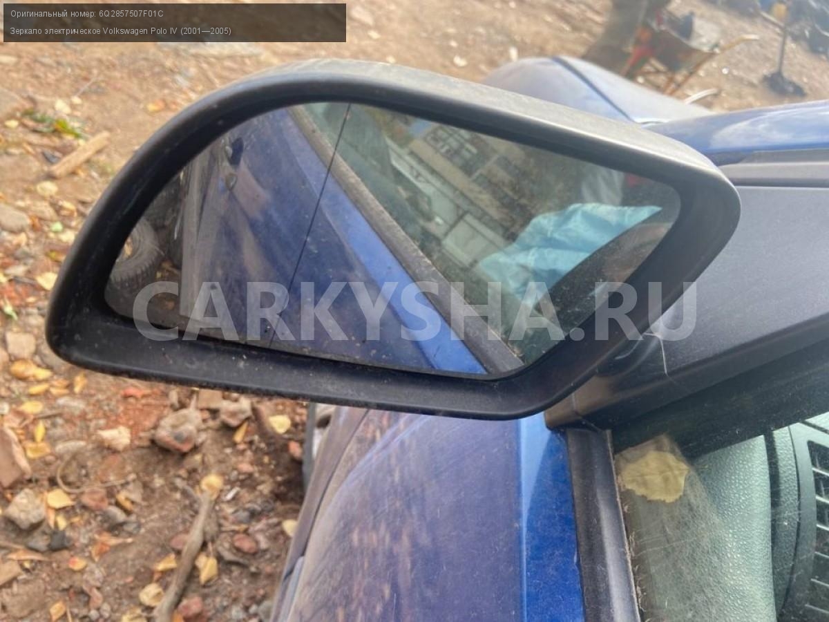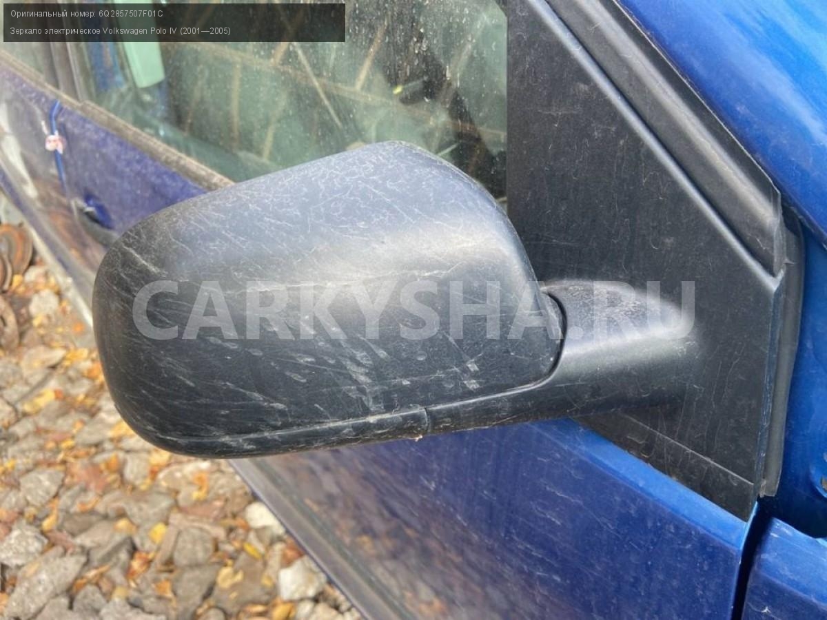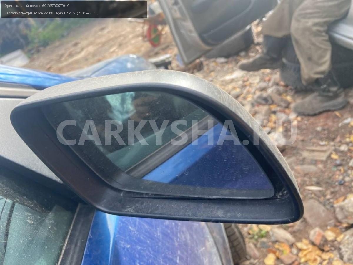 Volkswagen Polo IV, зеркала электрические\nАртикул: 3269\n\nОриг. номер: 6Q2857507F01C\nПроизводитель: VOLKSWAGEN\nПримечание:Фольцваген Поло 4, зеркала левое, правое электрические. Б/у. Цена за шт. \n\nМарка: Volkswagen\nМодель: Polo IV (2001—2005)\nГод выпуска: 2002\nКузов тип: Хетчбэк\nДвигатель номер: BBY\nМодель двигателя: инжектор\nОбъем: 1.4\nТопливо: Бензин\nКоробка: Автомат\nЦвет: Синий\nПраво/Лево: Право/Лево\nСовместимости: Volkswagen Polo IV (2001—2005) 1.4 AT (75 л.с.)\nСовместимость: