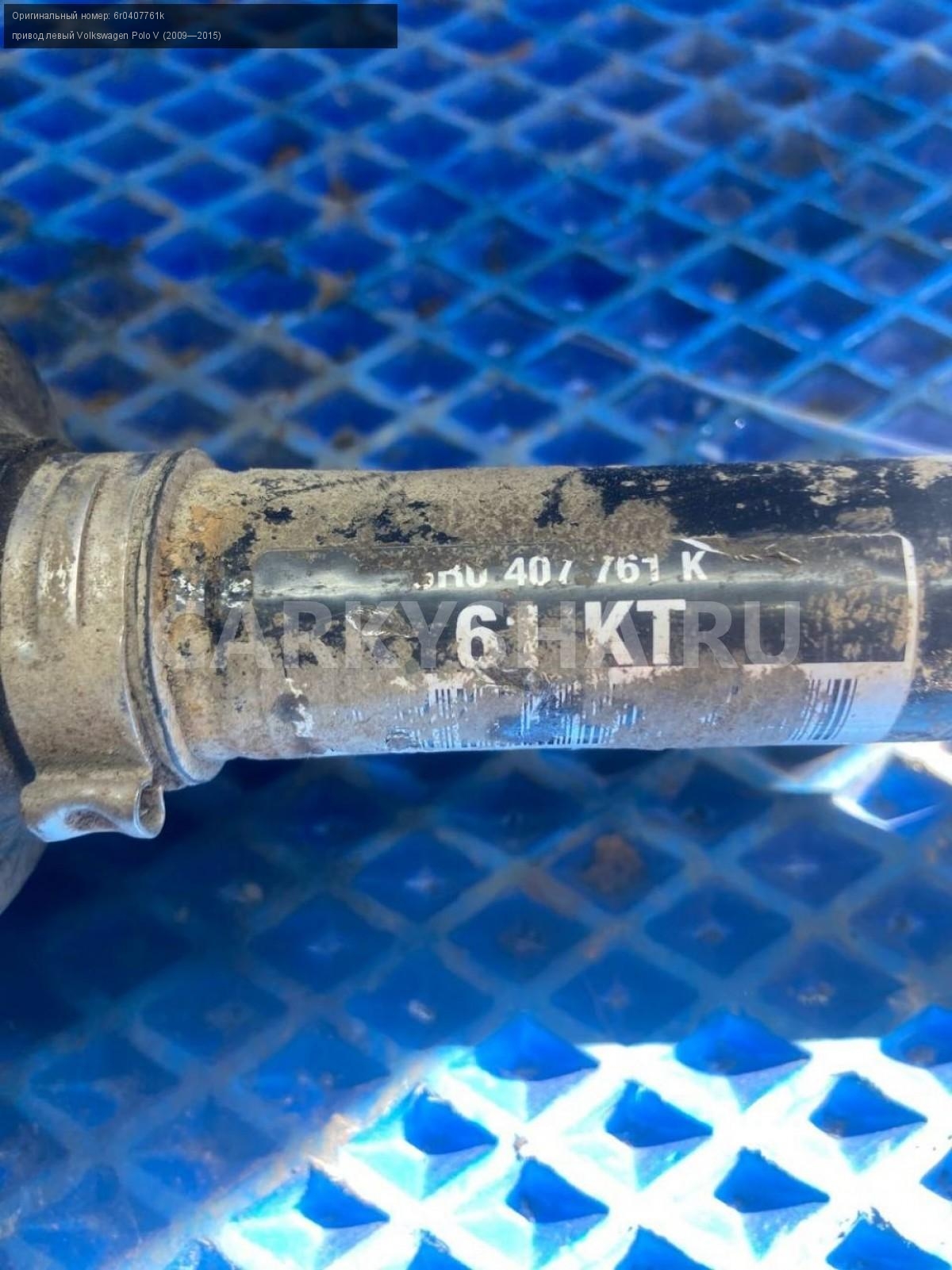 Volkswagen Polo V, привод левый , мкпп.\nАртикул: 8364\n\nОриг. номер: 6r0407761k\nПроизводитель: VAG\nПримечание:Фольцваген Поло 5, привод левый, б/у. \n\nМарка: Volkswagen\nМодель: Polo V (2009—2015)\nГод выпуска: 2015\nКузов тип: Седан\nДвигатель номер: CFNB\nОбъем: 1.6\nТопливо: Бензин\nКоробка: Механика\nЦвет: Серебристо-желтый\nПраво/Лево: Лево\nСовместимости: Volkswagen Polo V (2009—2015) 1.6 MPI MT (85 л.с.)\nСовместимость: