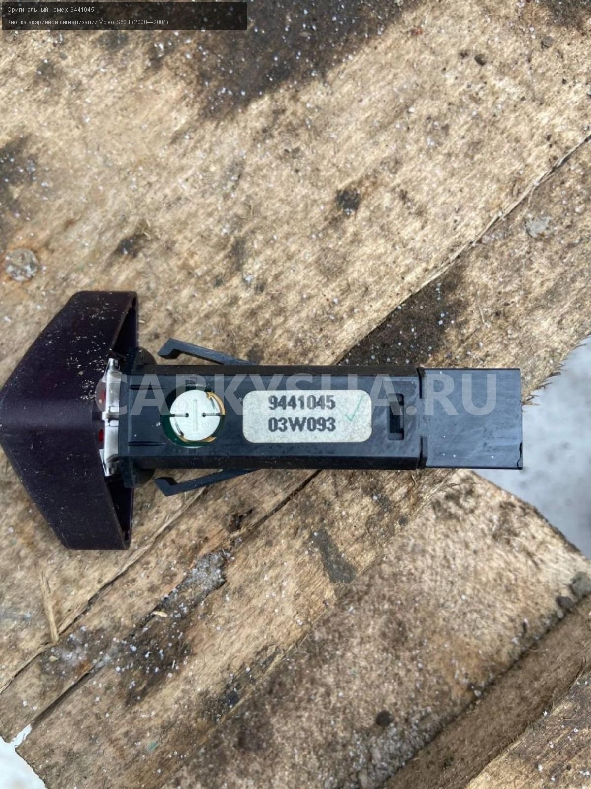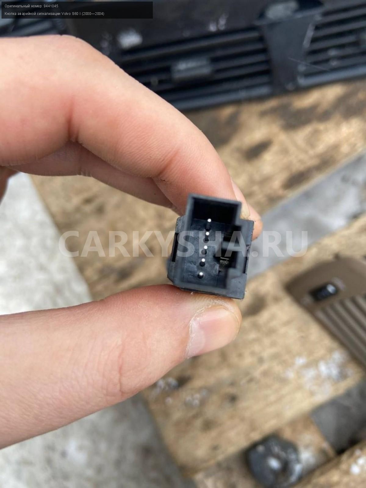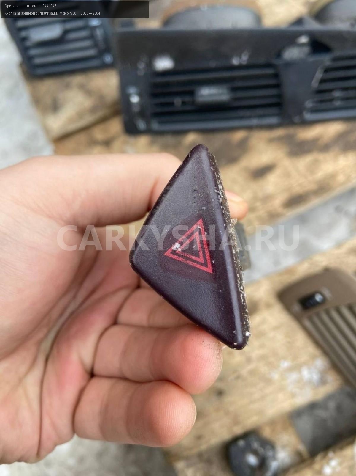 Volvo S60, кнопка аварийки.\nАртикул: 6937\n\nОриг. номер: 9441045\nПроизводитель: VOLVO\nПримечание:Вольво S60, кнопка аварийки, аварийной сигнализации, б/у. \n\nМарка: Volvo\nМодель: S60 I (2000—2004)\nГод выпуска: 2003\nКузов тип: Седан\nДвигатель номер: B5244S\nМодель двигателя: инжектор\nОбъем: 2.4\nТопливо: Бензин\nКоробка: Автомат\nЦвет: Черный\nСовместимости: Volvo S60 I (2000—2004) 2.4 AT (170 л.с.)\nСовместимость:
