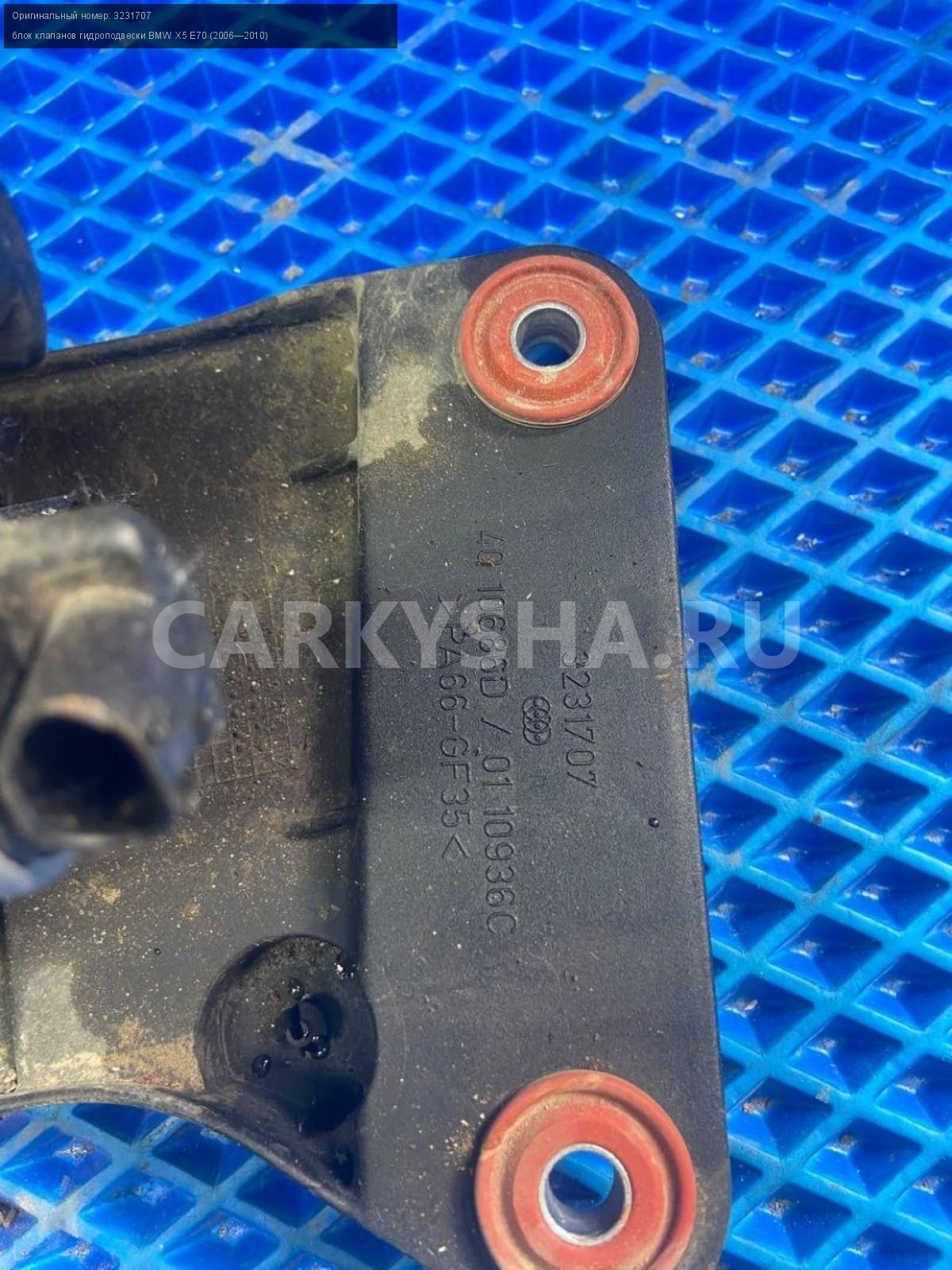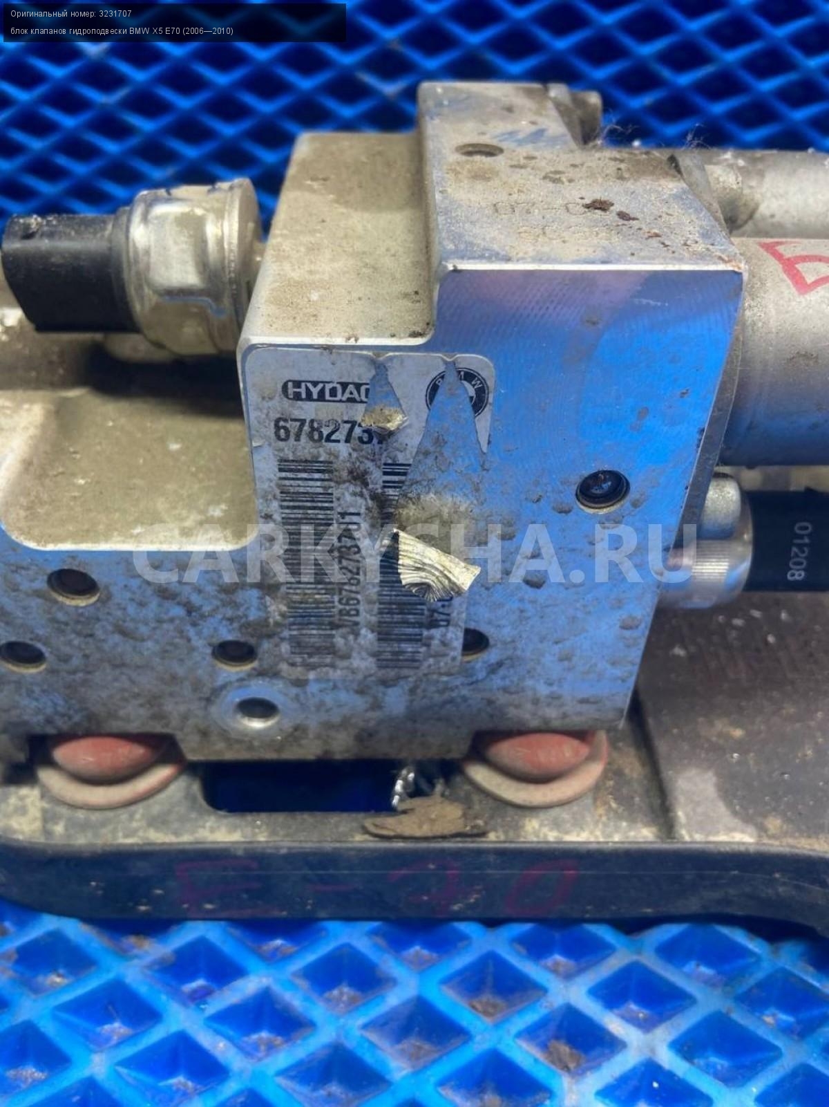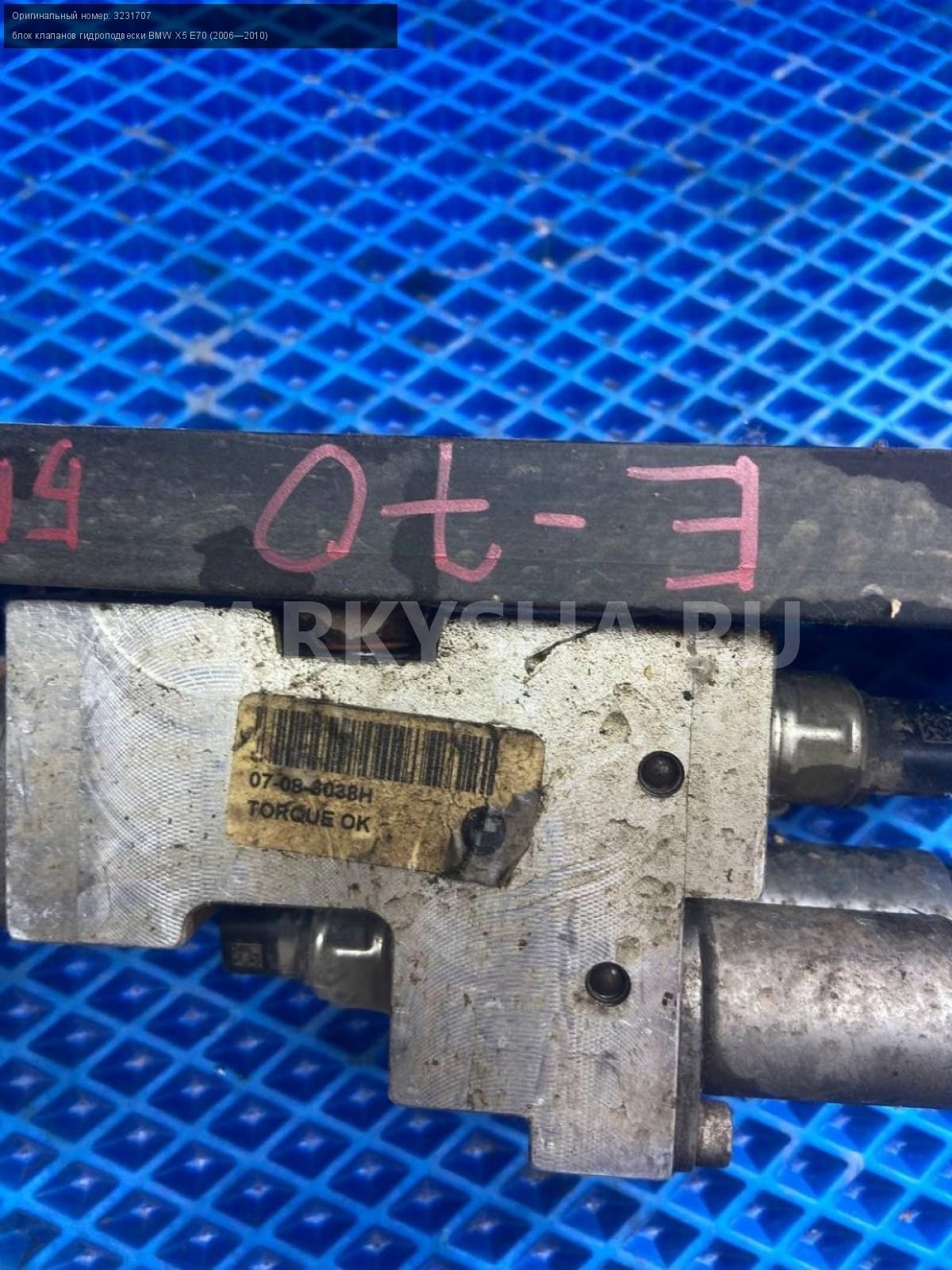 BMW X5 E70, Блок клапанов гидроподвески.\nАртикул: 7999\n\nОриг. номер: 3231707\nПроизводитель: BMW\nПримечание:БМВ Х5 Е70, блок клапанов гидроподвески, б/у. \n\nМарка: BMW\nМодель: X5 E70 (2006—2010)\nГод выпуска: 2008\nКузов тип: Внедорожник\nДвигатель номер: N62B48\nМодель двигателя: инжектор\nОбъем: 4.8\nТопливо: Бензин\nКоробка: Автомат\nЦвет: Бежевый\nСовместимости: BMW X5 E70 (2006—2010) 48i 4.8 AT (355 л.с.)\nСовместимость: