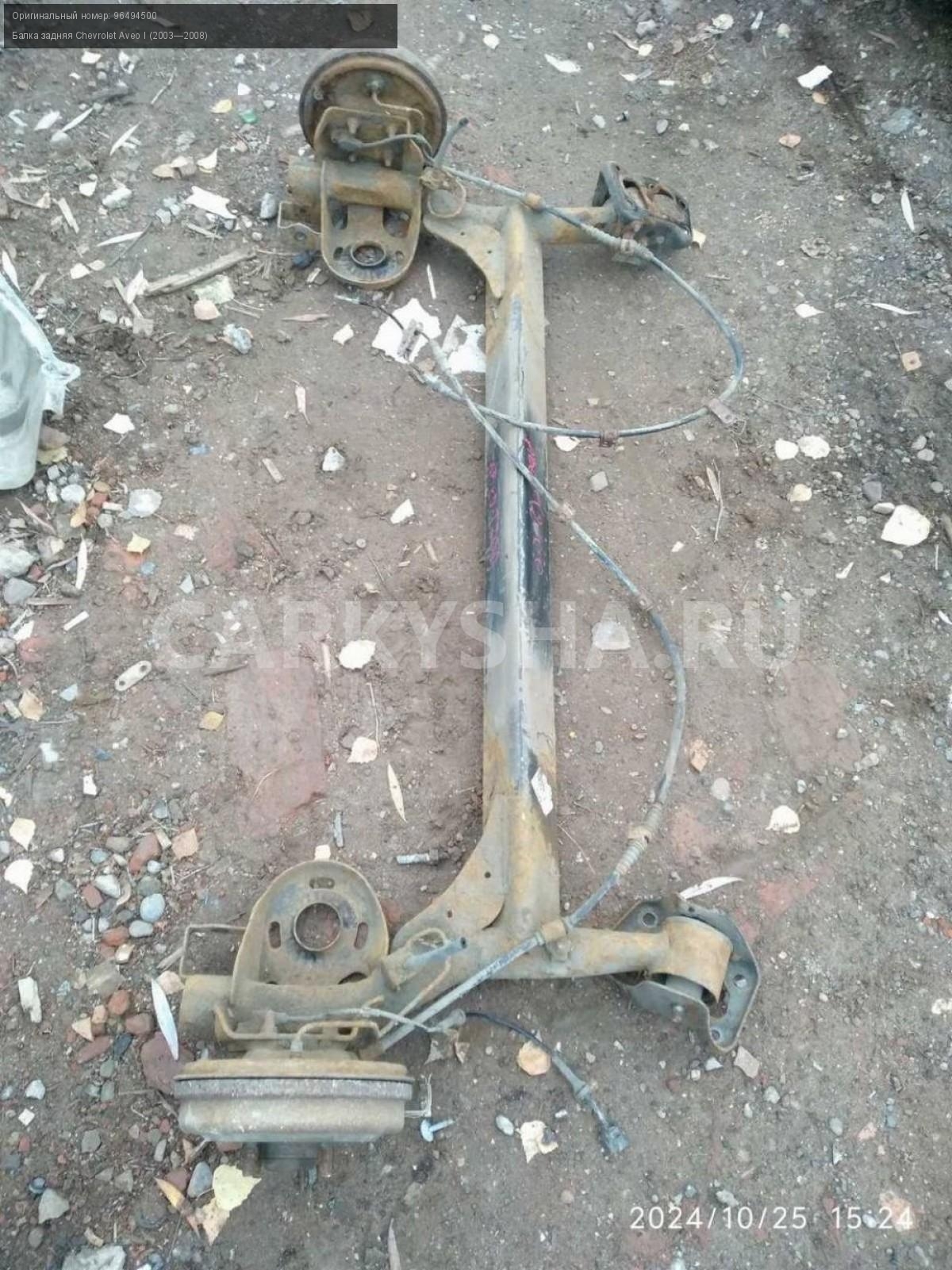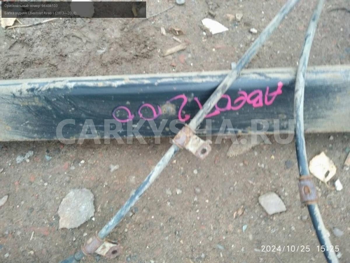 Chevrolet Aveo T200 хэтчбек, балка задняя.\nАртикул: 6091\n\nОриг. номер: 96494500\nПроизводитель: GENERAL MOTORS\nПримечание:Шевроле Авео Т200 хэтчбек, задняя балка, б/у. \n\nМарка: Chevrolet\nМодель: Aveo I (2003—2008)\nГод выпуска: 2007\nКузов тип: Хетчбэк\nДвигатель номер: B12S1\nМодель двигателя: инжектор\nОбъем: 1.2\nТопливо: Бензин\nКоробка: Механика\nЦвет: Темно-серый\nПеред/Зад: Зад\nСовместимости: Chevrolet Aveo I (2003—2008) 1.2 MT (72 л.с.)\nСовместимость:
