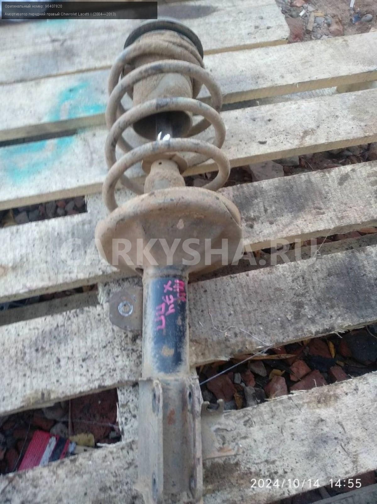 Chevrolet Lacetti, амортизатор передний правый.\nАртикул: 5950\n\nОриг. номер: 96407820\nПроизводитель: GENERAL MOTORS\nПримечание:Шевроле Лачетти , амортизатор передний правый в сборе, б/у. \n\nМарка: Chevrolet\nМодель: Lacetti I (2004—2013)\nГод выпуска: 2006\nКузов тип: Хетчбэк\nДвигатель номер: F16D3\nМодель двигателя: инжектор\nОбъем: 1.6\nТопливо: Бензин\nКоробка: Механика\nЦвет: Серебристый\nПраво/Лево: Право\nПеред/Зад: Перед\nСовместимости: Chevrolet Lacetti I (2004—2013) 1.6 MT (109 л.с.)\nСовместимость: