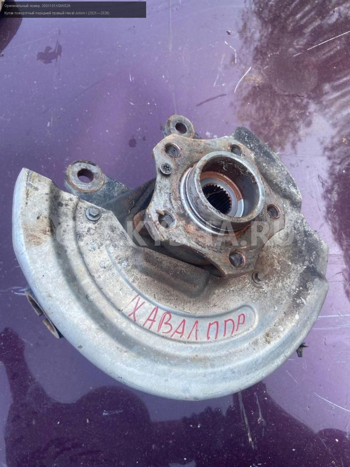 Haval Jolion, кулак поворотный передний правый.\nАртикул: 8306\n\nОриг. номер: 3001101XGW02A\nПроизводитель: Haval\nПримечание:Хавал Джулион, кулак поворотный передний правый в сборе, б/у. \n\nМарка: Haval\nМодель: Jolion I (2021—2026)\nГод выпуска: 2022\nКузов тип: Внедорожник\nМодель двигателя: инжектор\nОбъем: 1.5\nТопливо: Бензин\nКоробка: Робот\nПраво/Лево: Право\nПеред/Зад: Перед\nСовместимости: Haval Jolion I (2021—2026) 1.5 AMT (143 л.с.)\nСовместимость: