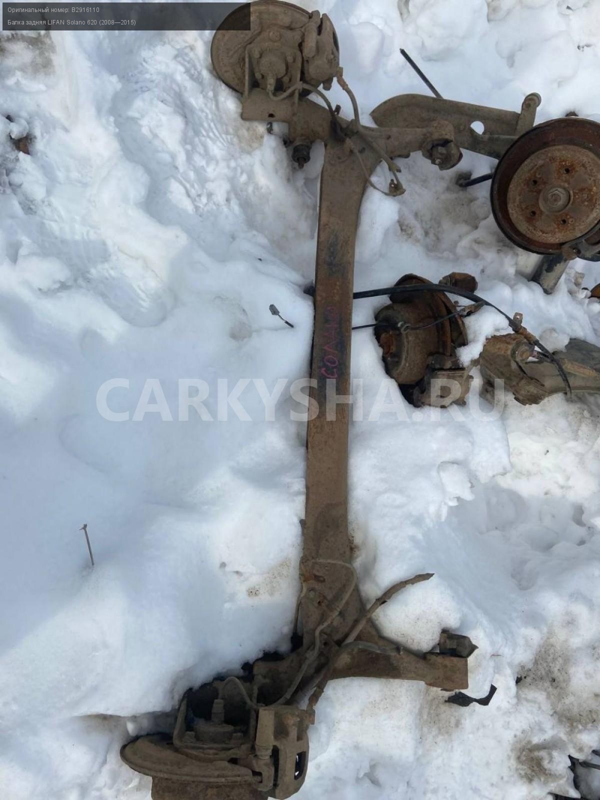 LIFAN Solano 620, балка задняя.\nАртикул: 4434\n\nОриг. номер: B2916110\nПроизводитель: LIFAN\nПримечание:Лифан Солано 620, балка задняя, цена без дисков и суппортов, бу. \n\nМарка: LIFAN\nМодель: Solano 620 (2008—2015)\nГод выпуска: 2013\nКузов тип: Седан\nДвигатель номер: LF481Q3\nМодель двигателя: инжектор\nОбъем: 1.6\nТопливо: Бензин\nКоробка: Механика\nЦвет: Черный\nПеред/Зад: Зад\nСовместимости: LIFAN Solano 620 (2008—2015) 1.6 MT (106 л.с.)\nСовместимость: