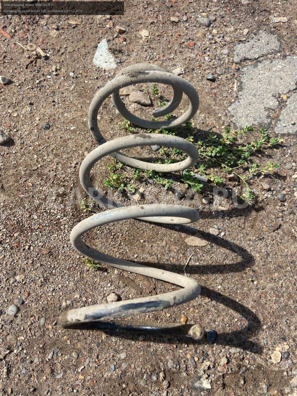 Mazda 3 BL, пружина передняя.\nАртикул: 5441\n\nОриг. номер: BBM334011C\nПроизводитель: MAZDA\nПримечание:Мазда 3 BL , пружина передняя , б/у. \n\nМарка: Mazda\nМодель: 3 BL рестайлинг (2011—2013)\nГод выпуска: 2012\nКузов тип: Седан\nДвигатель номер: Z6\nМодель двигателя: инжектор\nОбъем: 1.6\nТопливо: Бензин\nКоробка: Автомат\nЦвет: Темно-Сервй\nПеред/Зад: Перед\nСовместимости: Mazda 3 BL рестайлинг (2011—2013) 1.6 AT (105 л.с.)\nСовместимость:
