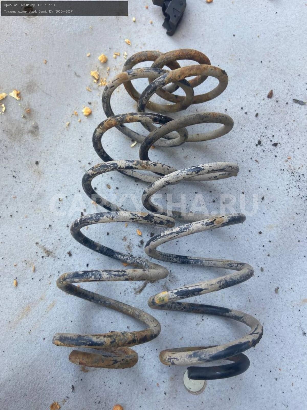 Mazda Demio DY3, пружины задние пара.\nАртикул: 4941\n\nОриг. номер: D35028011D\nПроизводитель: MAZDA\nПримечание:Мазда Демио DY3 , пружины задние, цена за пару, б/у. \n\nМарка: Mazda\nМодель: Demio IDY (2002—2007)\nГод выпуска: 2003\nКузов номер: DY3W254283\nКузов тип: Хетчбэк\nДвигатель номер: DY3\nМодель двигателя: инжектор\nОбъем: 1.4\nТопливо: Бензин\nКоробка: Автомат\nЦвет: Синий\nПраво/Лево: Право/Лево\nПеред/Зад: Зад\nСовместимости: Mazda Demio IDY (2002—2007) 1.4 AT (91 л.с.)\nСовместимость: