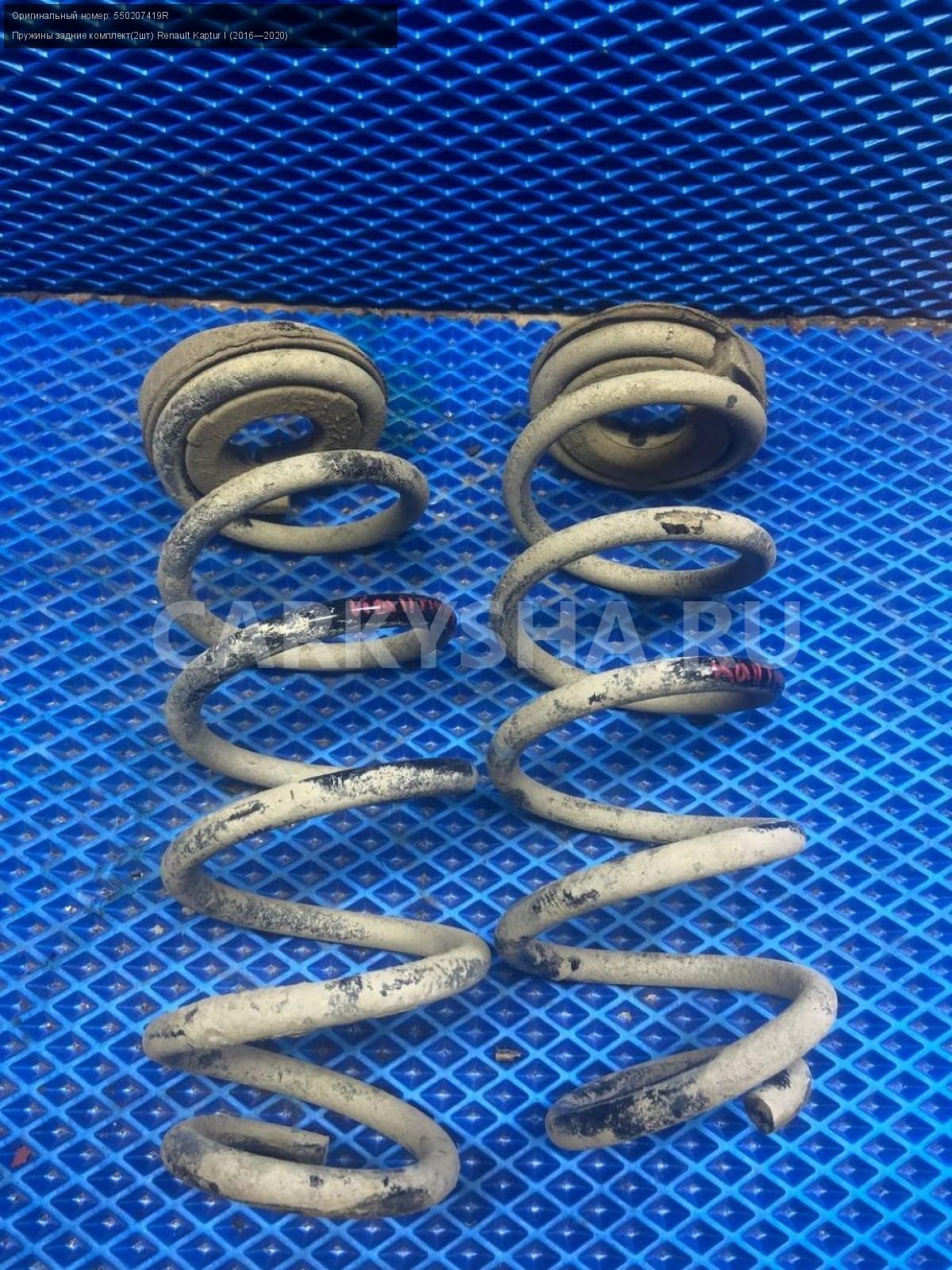 Renault Kaptur, пружины задние, пара.\nАртикул: 7876\n\nОриг. номер: 550207419R\nПроизводитель: RENAULT\nПримечание:Рено Каптюр, пружины задние, цена за пару, б/у. \n\nМарка: Renault\nМодель: Kaptur I (2016—2020)\nГод выпуска: 2016\nКузов тип: Внедорожник\nДвигатель номер: H4M438\nМодель двигателя: инжектор\nОбъем: 1.6\nТопливо: Бензин\nКоробка: Механика\nЦвет: Белый\nПраво/Лево: Право/Лево\nПеред/Зад: Зад\nСовместимости: Renault Kaptur I (2016—2020) 1.6 MT (114 л.с.)\nСовместимость: