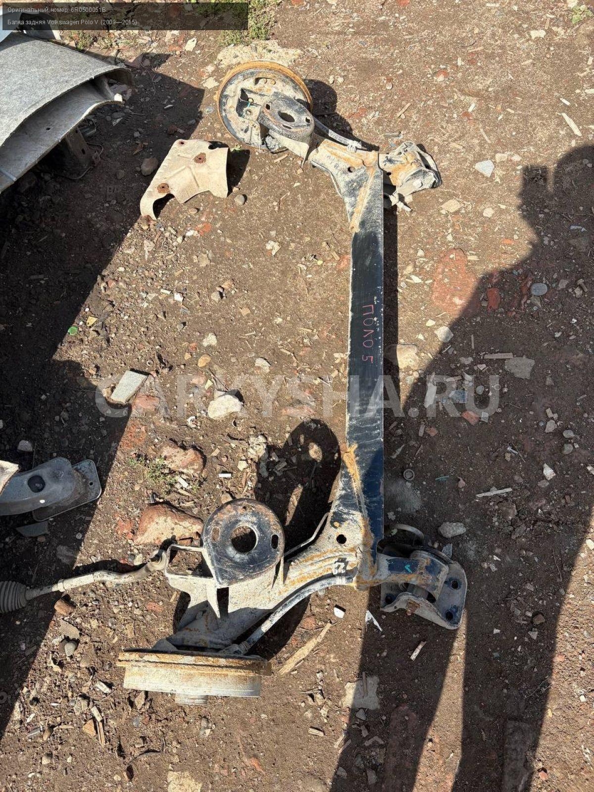 Volkswagen Polo V седан, балка задняя в сборе.\nАртикул: 8692\n\nОриг. номер: 6R0500051B\nПроизводитель: VAG\nПримечание:Фольксваген Поло 5 седан, балка задняя в сборе, б/у. \n\nМарка: Volkswagen\nМодель: Polo V (2009—2015)\nГод выпуска: 2015\nКузов тип: Седан\nДвигатель номер: CFNB\nОбъем: 1.6\nТопливо: Бензин\nКоробка: Механика\nЦвет: Серебристо-желтый\nПеред/Зад: Зад\nСовместимости: Volkswagen Polo V (2009—2015) 1.6 MPI MT (85 л.с.)\nСовместимость: