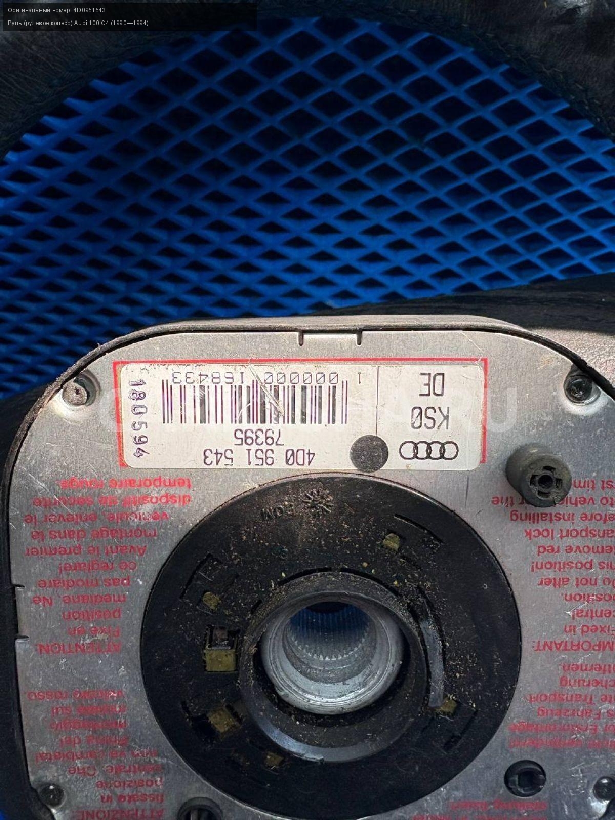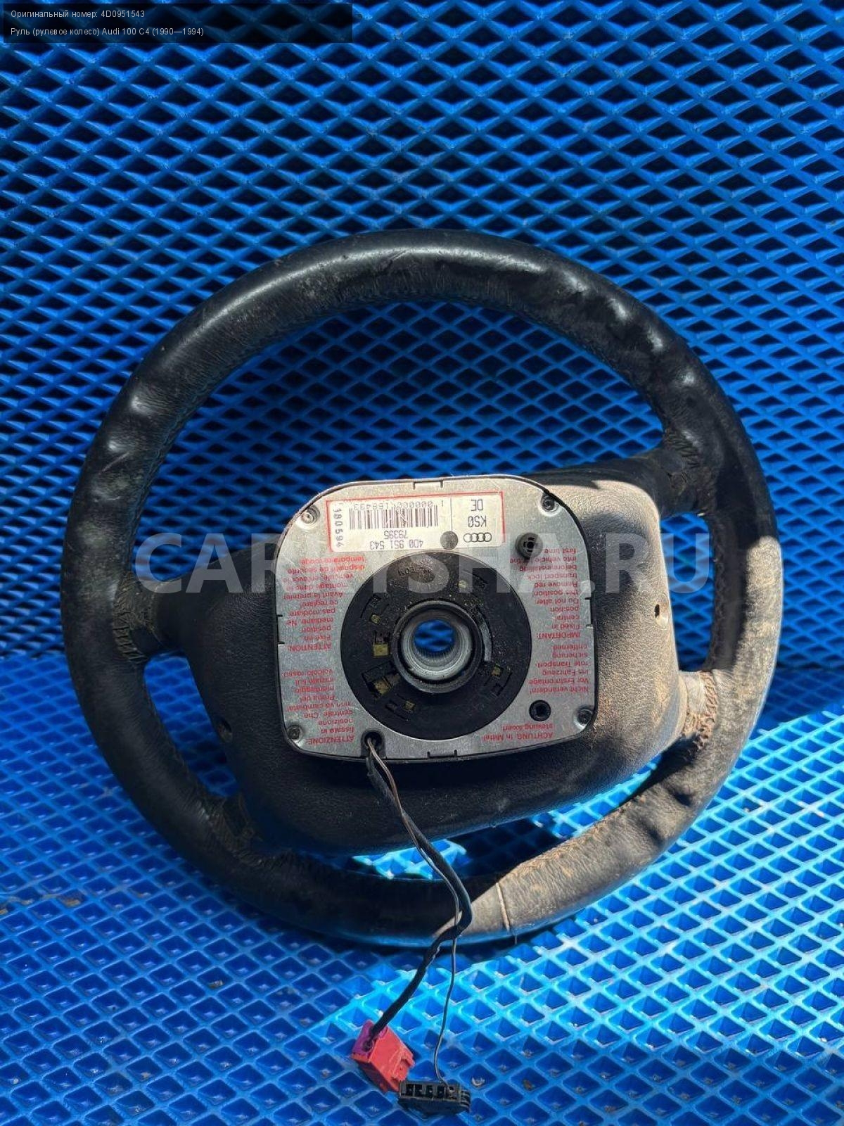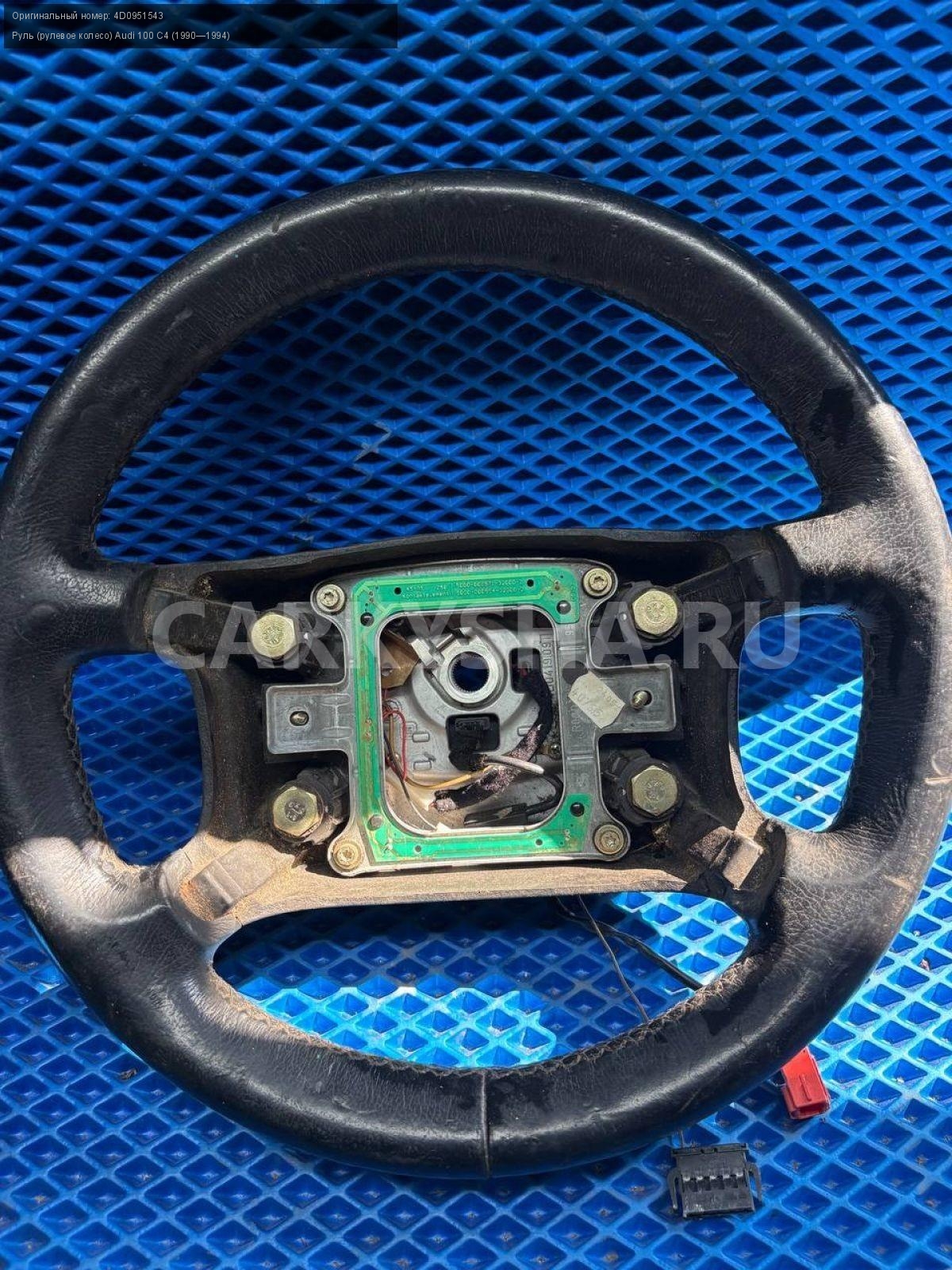 Audi 100 C4, руль, рулевое колесо.\nАртикул: 8449\n\nОриг. номер: 4D0951543\nПроизводитель: VAG\nПримечание:Ауди 100 С4, руль, рулевое колесо, б/у. \n\nМарка: Audi\nМодель: 100 C4 (1990—1994)\nСовместимости: Audi 100 C4 (1990—1994)\nСовместимость: