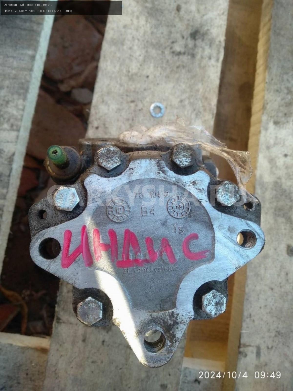 Chery IndiS (S18D), насос Гура без шкива.\nАртикул: 5892\n\nОриг. номер: s18-3407010\nПроизводитель: CHERY\nПримечание:Чери Индис S18D, насос гура без шкива, б/у. \n\nМарка: Chery\nМодель: IndiS (S18D) S18D (2011—2016)\nГод выпуска: 2012\nКузов тип: Хетчбэк\nДвигатель номер: sqr473f\nМодель двигателя: инжектор\nОбъем: 1.3\nТопливо: Бензин\nКоробка: Робот\nЦвет: Вишневый\nСовместимости: Chery IndiS (S18D) S18D (2011—2016) 1.3 AMT (83 л.с.)\nСовместимость: