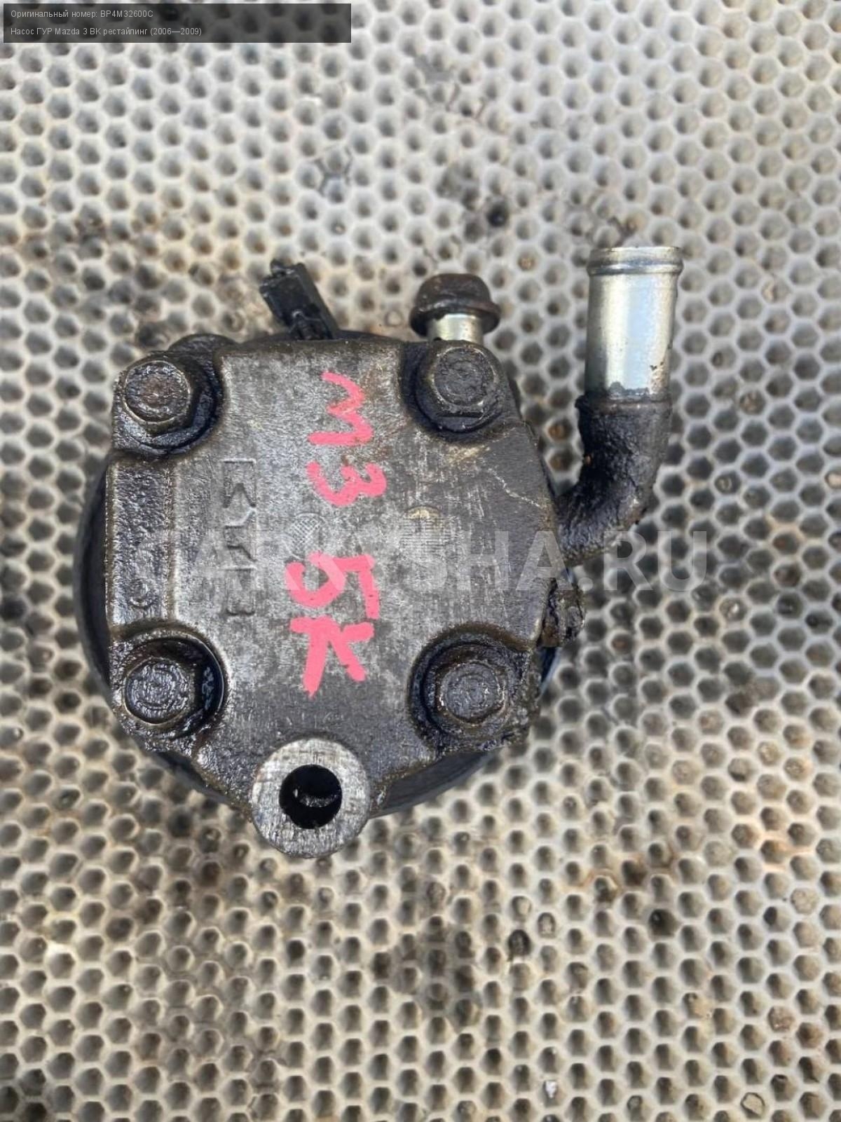 Mazda 3 BK, 1.6 Насос гура, гидроусилитель.\nАртикул: 7305\n\nОриг. номер: BP4M32600C\nПроизводитель: KYB\nПримечание:Мазда 3 ВК, 1.6, насос гура , гидроусилитель, б/у. \n\nМарка: Mazda\nМодель: 3 BK рестайлинг (2006—2009)\nГод выпуска: 2007\nКузов тип: Хетчбэк\nДвигатель номер: Z6\nМодель двигателя: инжектор\nОбъем: 1.6\nТопливо: Бензин\nКоробка: Автомат\nЦвет: 34N\nСовместимости: Mazda 3 BK рестайлинг (2006—2009) 1.6 AT (105 л.с.)\nСовместимость: