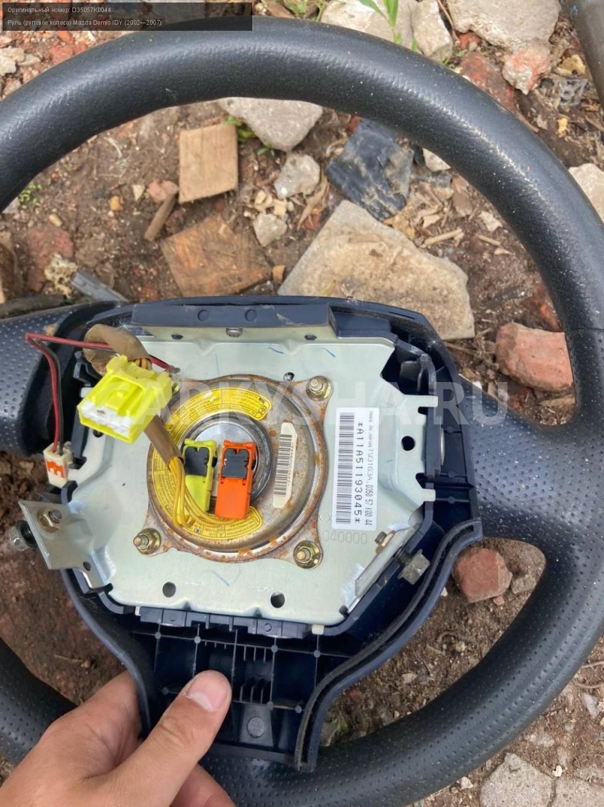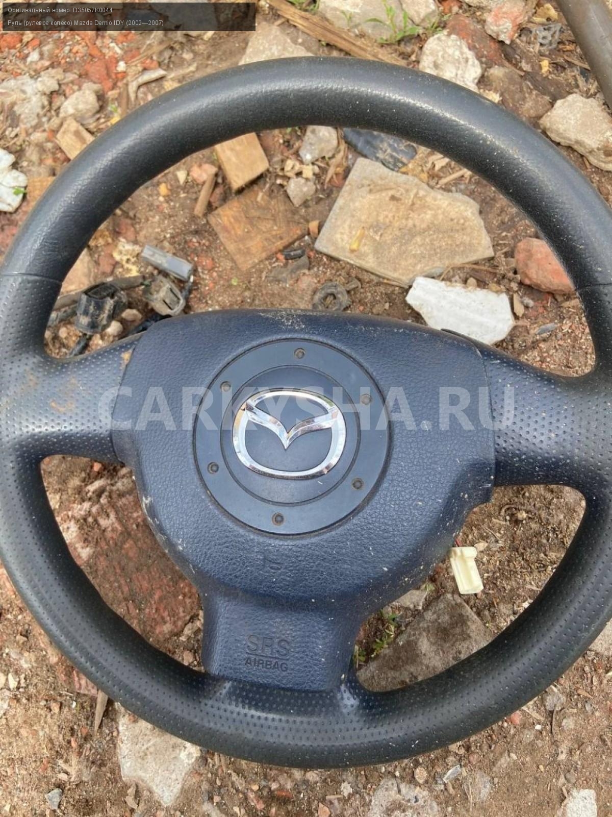 Mazda Demio DY3, руль с подушкой безопасности.\nАртикул: 5055\n\nОриг. номер: D35057K0044\nПроизводитель: MAZDA\nПримечание:Мазда Демио DY3, руль с подушкой безопасности, б/у. \n\nМарка: Mazda\nМодель: Demio IDY (2002—2007)\nГод выпуска: 2003\nКузов номер: DY3W254283\nКузов тип: Хетчбэк\nДвигатель номер: DY3\nМодель двигателя: инжектор\nОбъем: 1.4\nТопливо: Бензин\nКоробка: Автомат\nЦвет: Синий\nСовместимости: Mazda Demio IDY (2002—2007) 1.4 AT (91 л.с.)\nСовместимость: