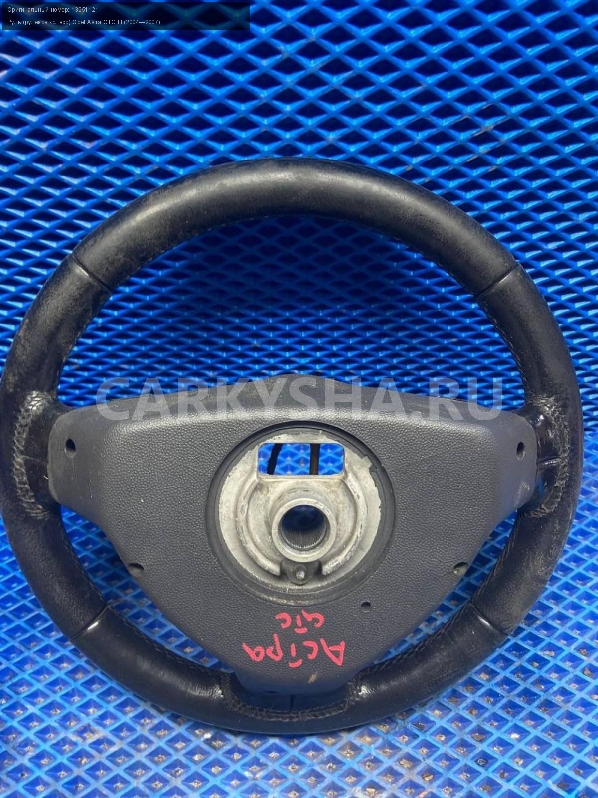 Opel Astra GTC H , руль, рулевое колесо.\nАртикул: 8053\n\nОриг. номер: 13251121\nПроизводитель: OPEL\nПримечание:Опель Астра H GTC, руль, рулевое колесо, б/у. \n\nМарка: Opel\nМодель: Astra GTC H (2004—2007)\nГод выпуска: 2007\nКузов тип: Купе\nДвигатель номер: Z18XER\nМодель двигателя: инжектор\nОбъем: 1.8\nТопливо: Бензин\nКоробка: Автомат\nЦвет: Серый\nСовместимости: Opel Astra GTC H (2004—2007) 1.8 AT (140 л.с.)\nСовместимость: