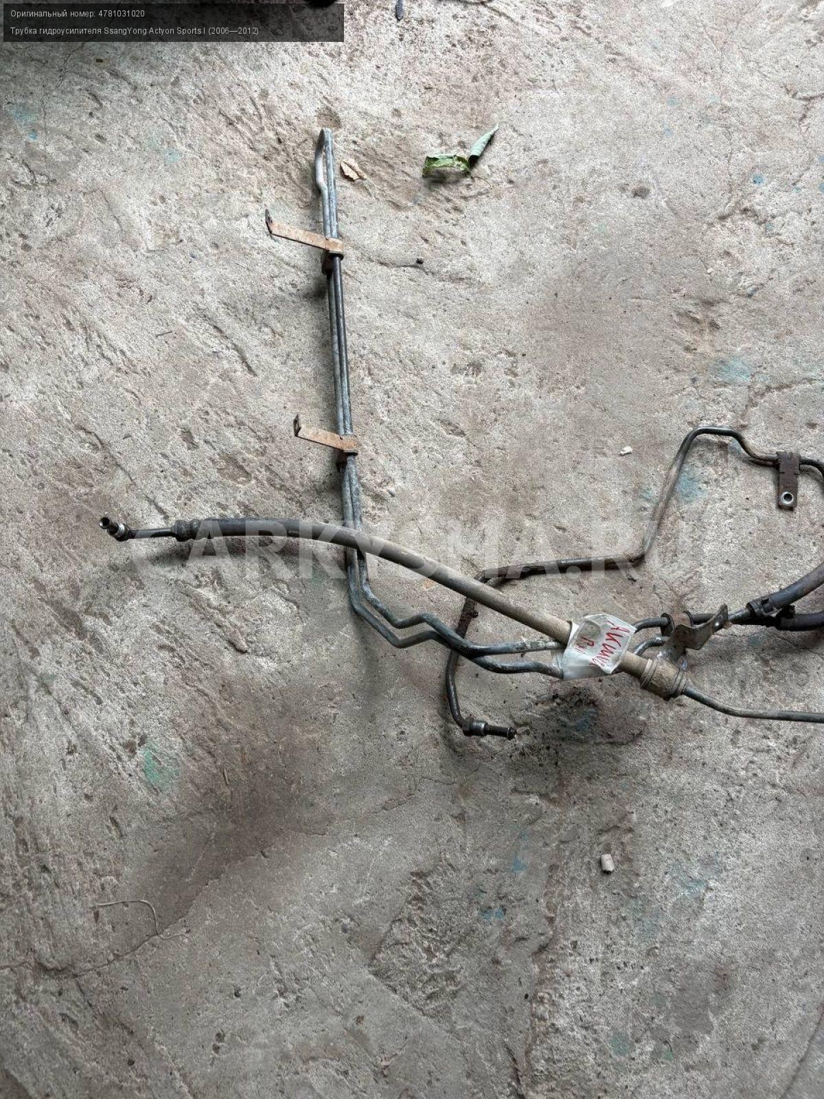 SsangYong Actyon Sports I, трубки гура комплект.\nАртикул: 8693\n\nОриг. номер: 4781031020\nПроизводитель: SSANG YONG\nПримечание:СсангЕнг Актион Спорт 1, трубки гура, цена за комплект, б/у. \n\nМарка: SsangYong\nМодель: Actyon Sports I (2006—2012)\nГод выпуска: 2008\nКузов тип: Пикап\nДвигатель номер: 664950\nМодель двигателя: турбо-дизель\nОбъем: 2.0\nТопливо: Дизель\nКоробка: Механика\nЦвет: Синий\nСовместимости: SsangYong Actyon Sports I (2006—2012) 2.0 Xdi 4WD MT (141 л.с.)\nСовместимость: