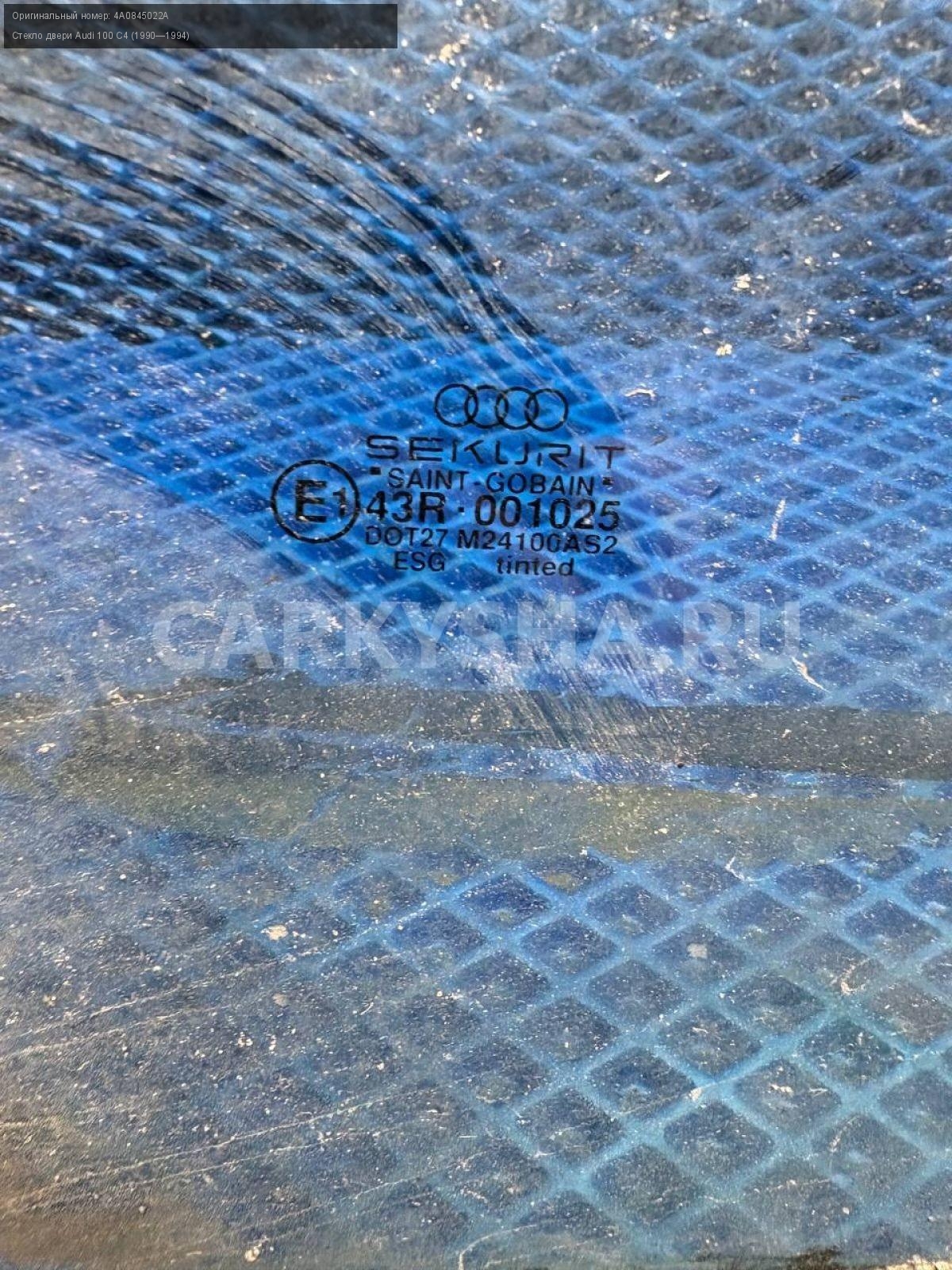 Audi 100 C4, стекло двери передней правой.\nАртикул: 8506\n\nОриг. номер: 4A0845022A\nПроизводитель: VAG\nПримечание:Ауди 100 С4, стекло двери передней правой, б/у. \n\nМарка: Audi\nМодель: 100 C4 (1990—1994)\nПраво/Лево: Право\nПеред/Зад: Перед\nСовместимости: Audi 100 C4 (1990—1994)\nСовместимость: