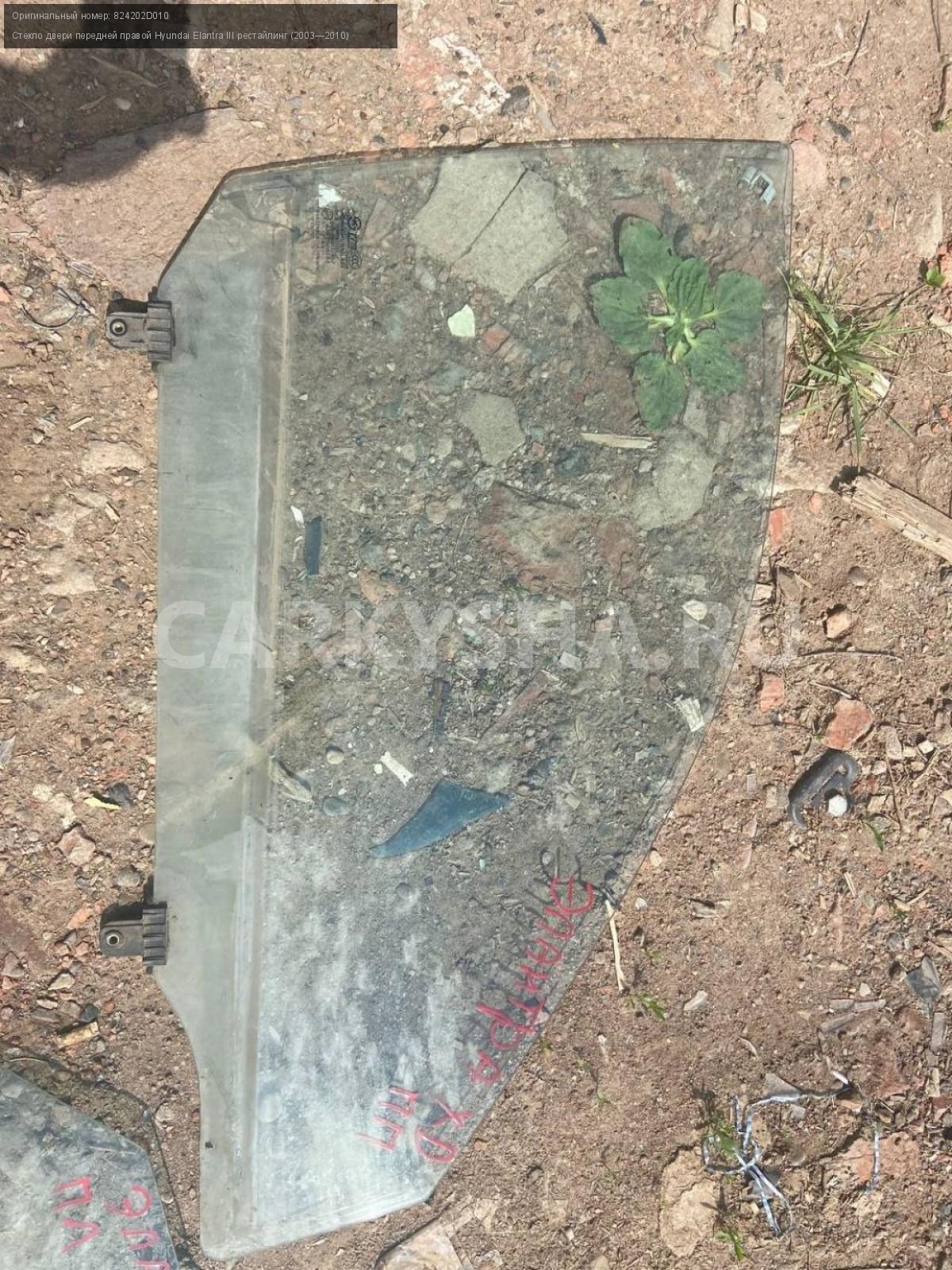 Hyundai Elantra III, стекло двери передней правой.\nАртикул: 5153\n\nОриг. номер: 824202D010\nПроизводитель: Hyundai-KIA\nПримечание:Хендай Элантра 3, стекло двери передней правой. Б/у. \n\nМарка: Hyundai\nМодель: Elantra III рестайлинг (2003—2010)\nГод выпуска: 2005\nКузов тип: Седан\nДвигатель номер: G4ED\nМодель двигателя: турбо\nОбъем: 1.6\nТопливо: Бензин\nКоробка: Автомат\nЦвет: Серебристый\nПраво/Лево: Право\nПеред/Зад: Перед\nСовместимости: Hyundai Elantra III рестайлинг (2003—2010) 1.6 AT (105 л.с.)\nСовместимость: