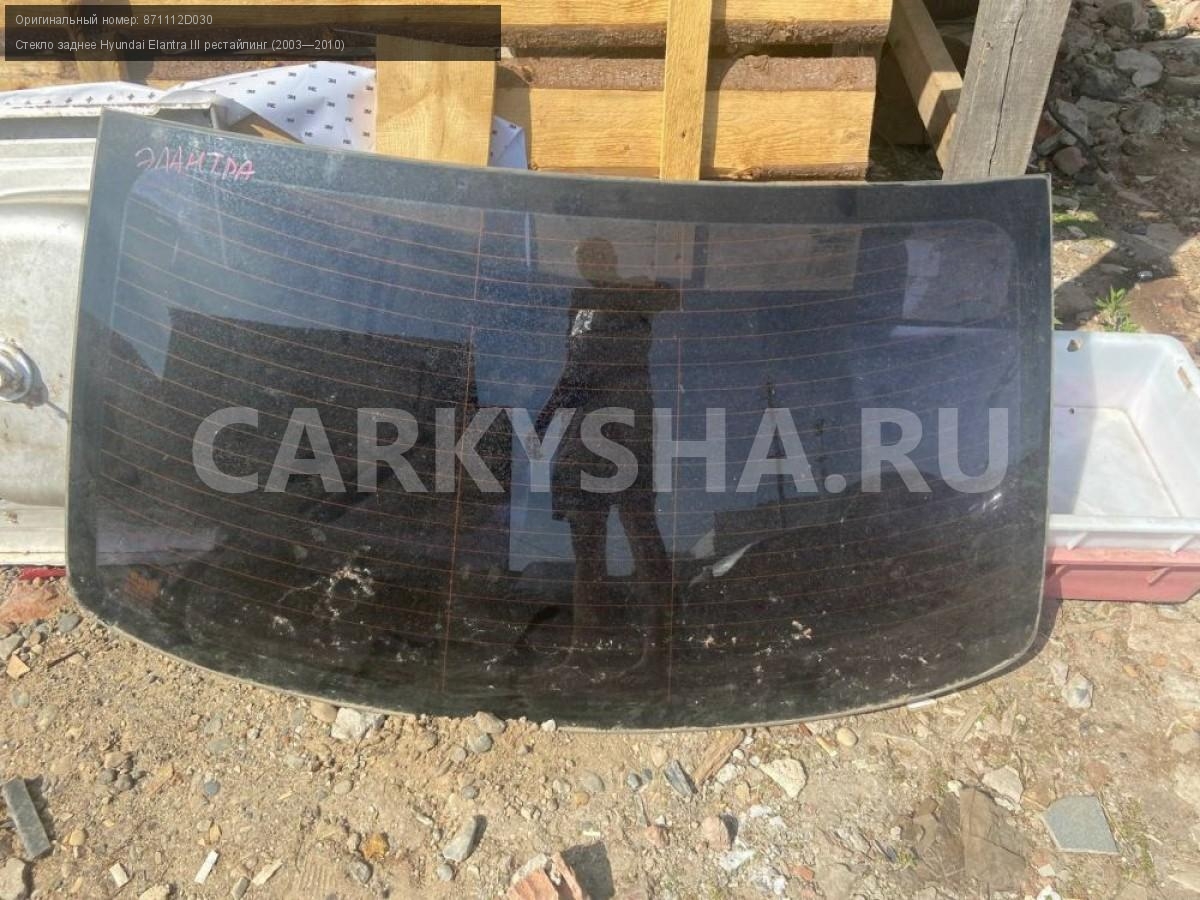Hyundai Elantra III, седан, стекло заднее.\nАртикул: 5150\n\nОриг. номер: 871112D030\nПроизводитель: Hyundai-KIA\nПримечание:Хендай Элантра 3, седан, стекло заднее, б/у. \n\nМарка: Hyundai\nМодель: Elantra III рестайлинг (2003—2010)\nГод выпуска: 2005\nКузов тип: Седан\nДвигатель номер: G4ED\nМодель двигателя: турбо\nОбъем: 1.6\nТопливо: Бензин\nКоробка: Автомат\nЦвет: Серебристый\nПеред/Зад: Зад\nСовместимости: Hyundai Elantra III рестайлинг (2003—2010) 1.6 AT (105 л.с.)\nСовместимость: