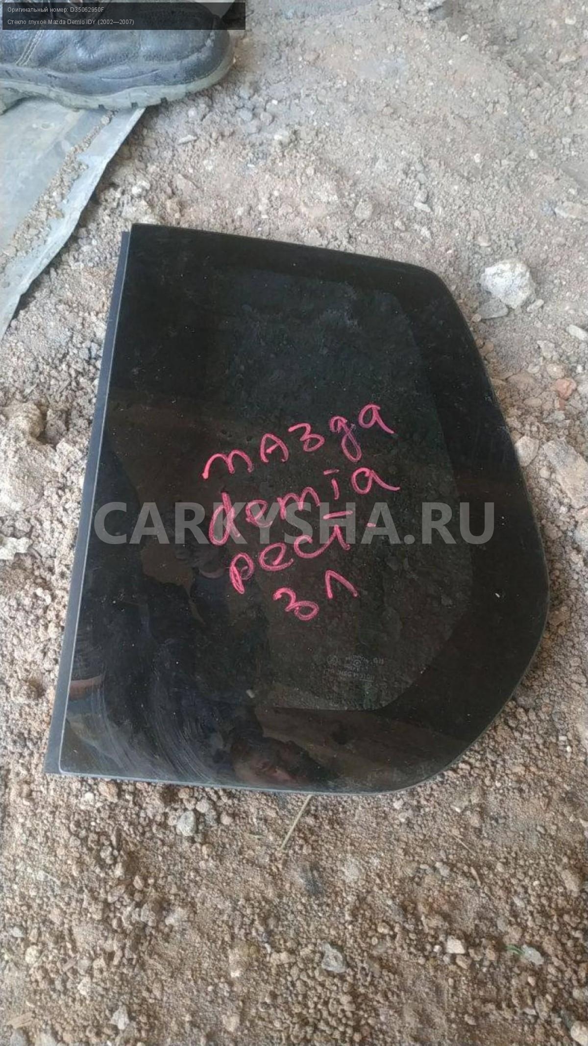 Mazda Demio DY3, форточки кузова задние.\nАртикул: 5348\n\nОриг. номер: D35062950F\nПроизводитель: MAZDA\nПримечание:Мазда Демио DY3, форточки кузова задние, цена за штуку, б/у. \n\nМарка: Mazda\nМодель: Demio IDY (2002—2007)\nГод выпуска: 2003\nКузов номер: DY3W254283\nКузов тип: Хетчбэк\nДвигатель номер: DY3\nМодель двигателя: инжектор\nОбъем: 1.4\nТопливо: Бензин\nКоробка: Автомат\nЦвет: Синий\nПраво/Лево: Право/Лево\nСовместимости: Mazda Demio IDY (2002—2007) 1.4 AT (91 л.с.)\nСовместимость: