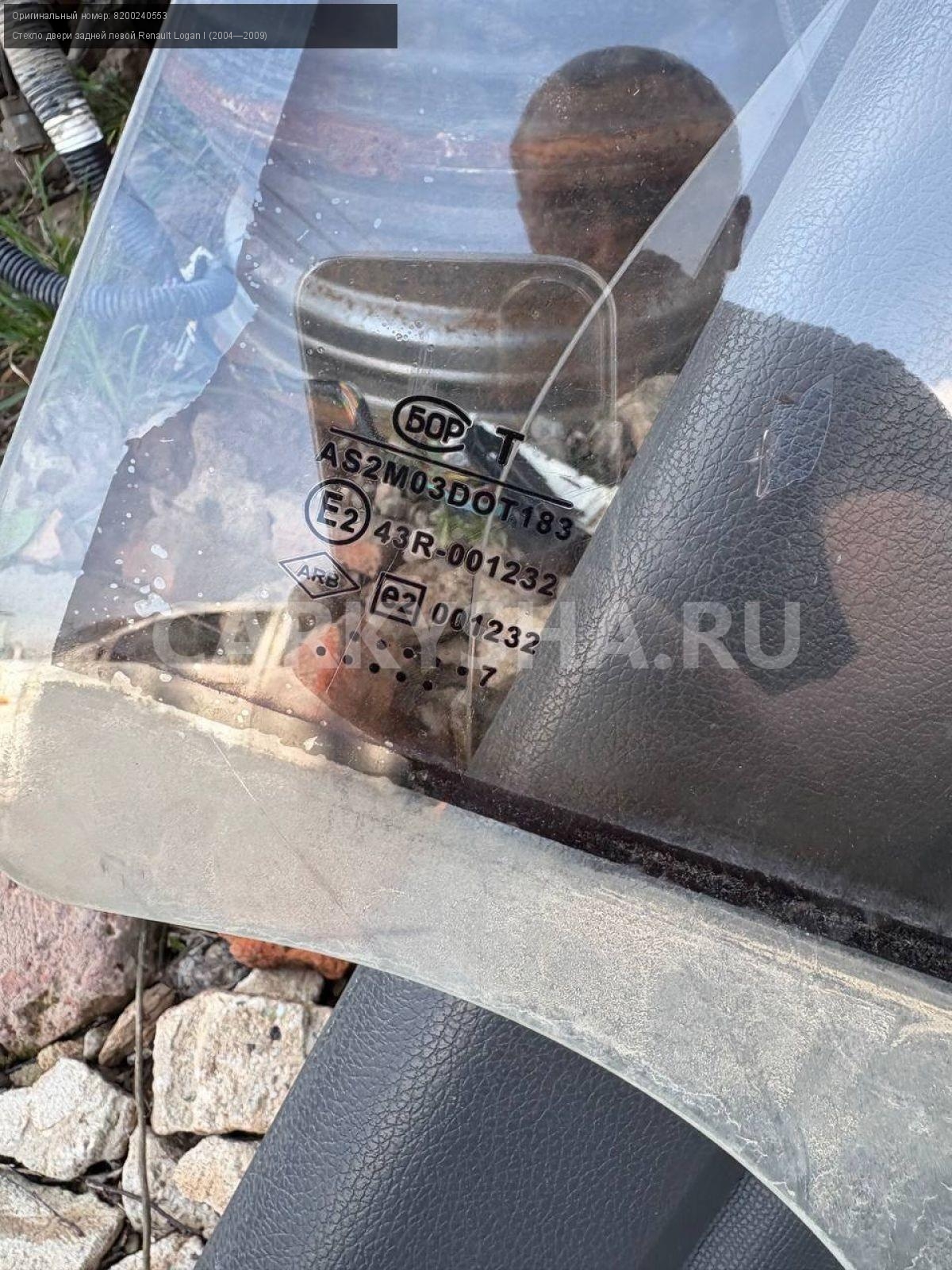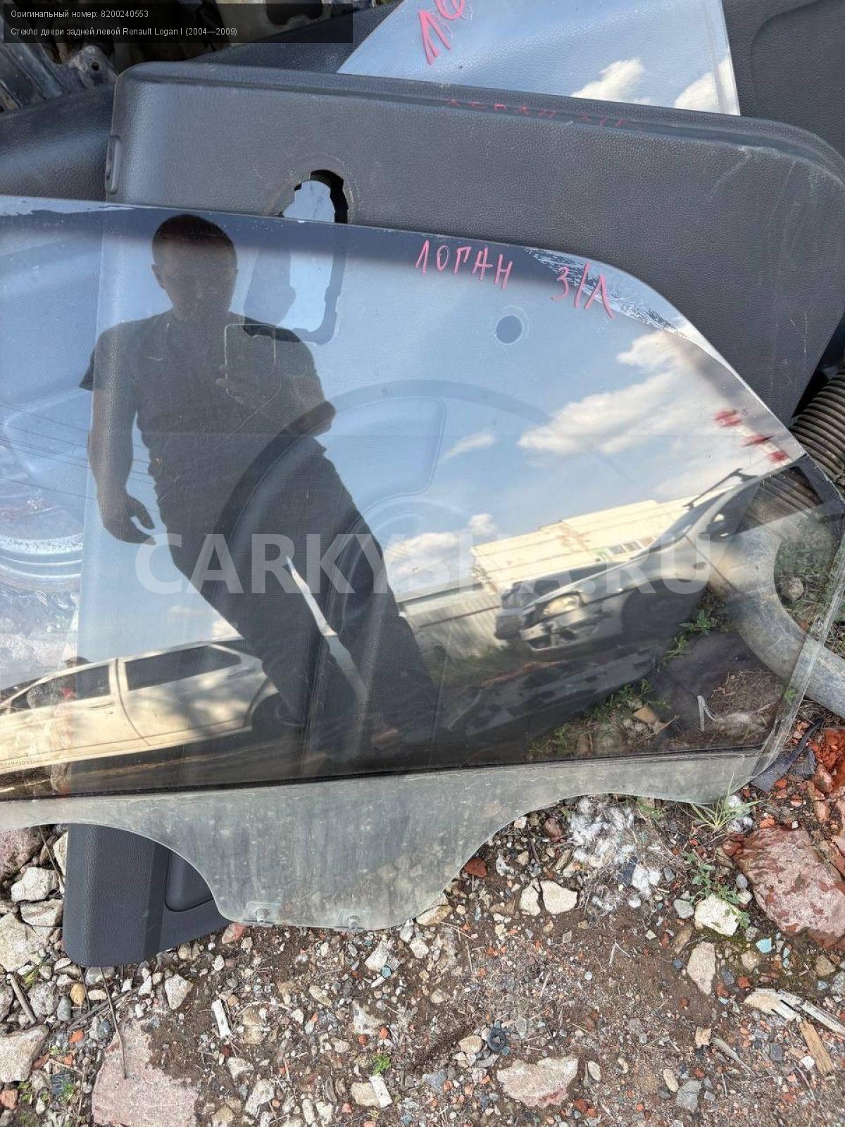Renault Logan I , стекло двери задней левой.\nАртикул: 8534\n\nОриг. номер: 8200240553\nПроизводитель: RENAULT\nПримечание:Рено Логан 1, стекло двери задней левой, б/у. \n\nМарка: Renault\nМодель: Logan I (2004—2009)\nГод выпуска: 2007\nКузов тип: Седан\nДвигатель номер: K7JA710\nМодель двигателя: инжектор\nОбъем: 1.4\nТопливо: Бензин\nКоробка: Механика\nЦвет: Синий\nПраво/Лево: Лево\nПеред/Зад: Зад\nСовместимости: Renault Logan I (2004—2009) 1.4 MT (75 л.с.)\nСовместимость: