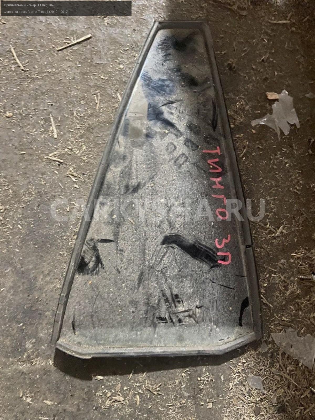 Vortex Tingo, форточка двери задняя правая.\nАртикул: 4055\n\nОриг. номер: T116203042\nПроизводитель: VORTEX\nПримечание:Вортекс Тинго, фоточка двери задняя правая, бу \n\nМарка: Vortex\nМодель: Tingo I (2010—2012)\nПраво/Лево: Право\nПеред/Зад: Зад\nСовместимости: Vortex Tingo I (2010—2012)\nСовместимость:
